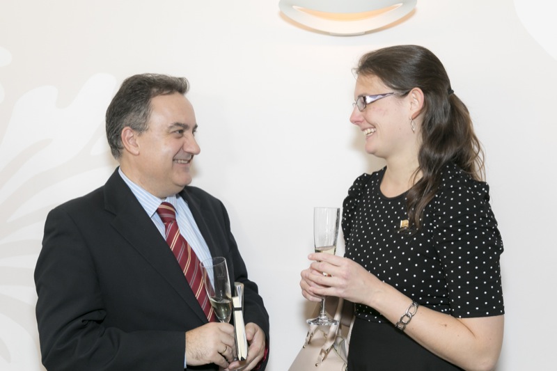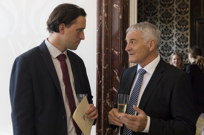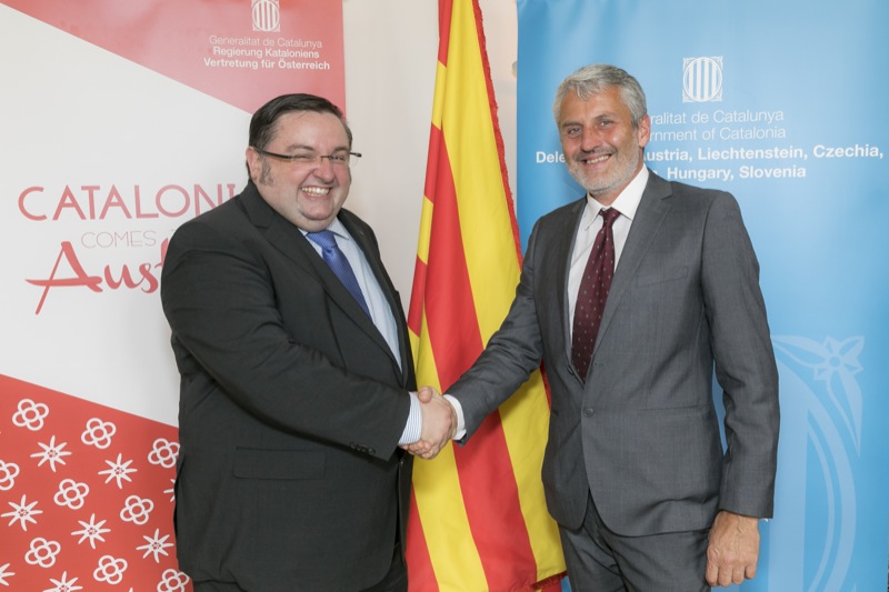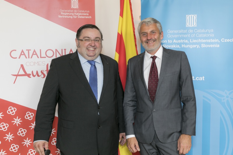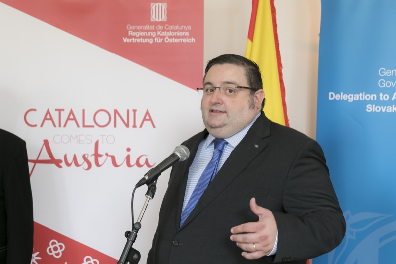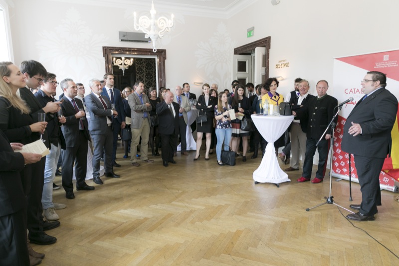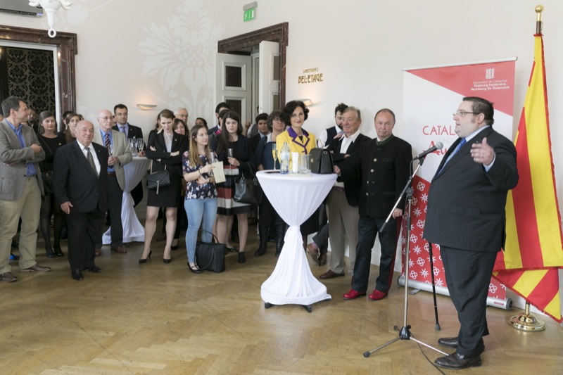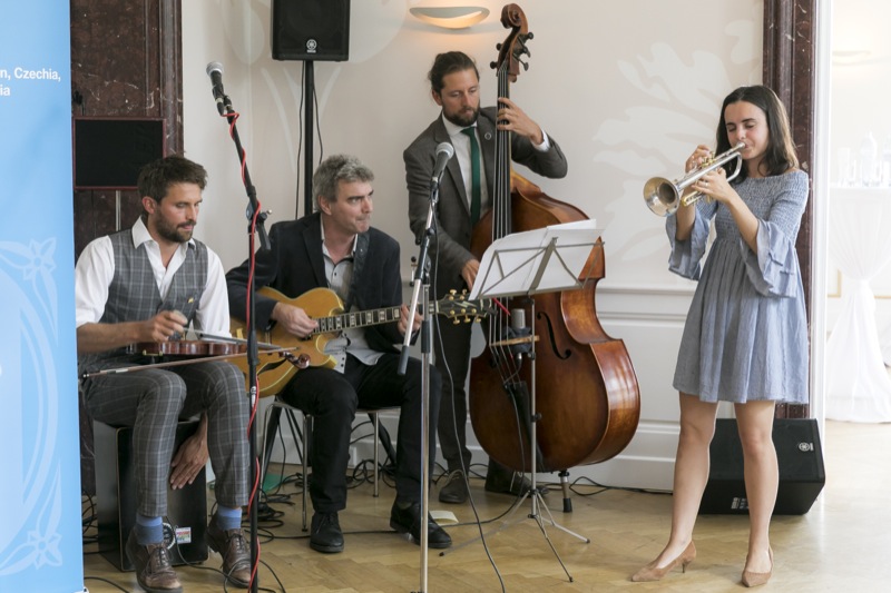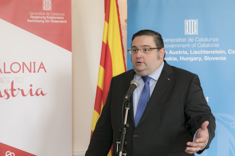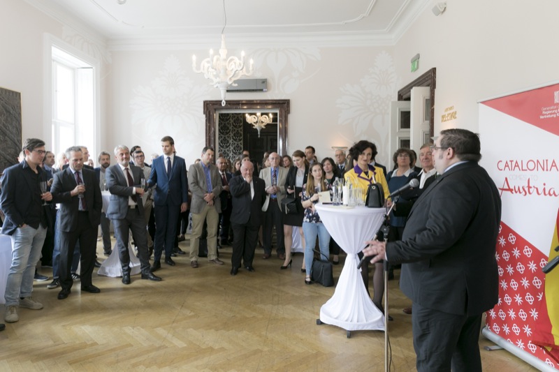 Der Gesandte der katalanischen Regierung, Adam Casals, lud anlässlich des katalanischen Nationalfeiertages zu einem Cocktailempfang und Jazzkonzert von Andrea Motis in die Bel Etage des Landtmann.