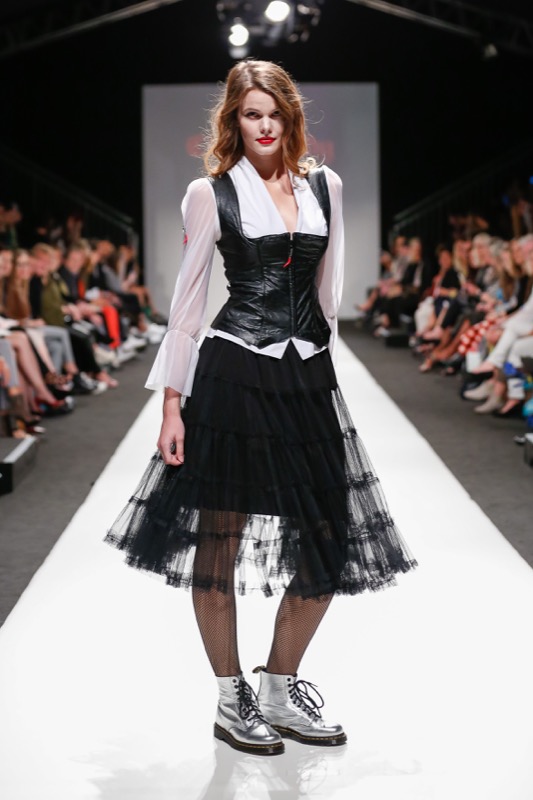 Bei der Fashion Show im Rahmen der MQ Vienna Fashion Week präsentierte die Designerin Aniko in ihrer Herbst-Kollektion ein stilsicheres Spiel mit Materialien und Stilrichtungen. Rockig und Fantasy mit einem Hauch Gothic machen ein Dirndl zu einem urbanen Kleidungsstück. Ein Highlight gleich zu Beginn der Fashion Show war die Live-Performance der international bekannten und aus Los Angeles stammenden Sängerin TRUTH HURTS.