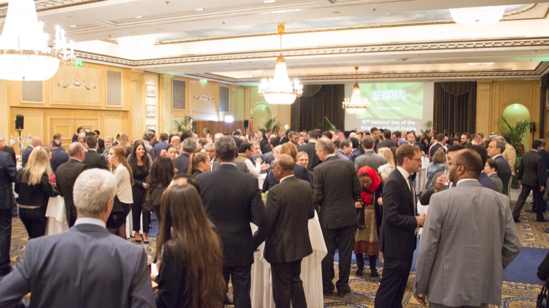 Der Botschafter und ständige Vertreter bei den Internationalen Organisationen des Königreiches Saudi Arabien in Österreich, S.E. Khalid Al Jindan, und seine Frau luden anlässlich des Nationalfeiertages zu einem Empfang in das Hotel Intercontinental.