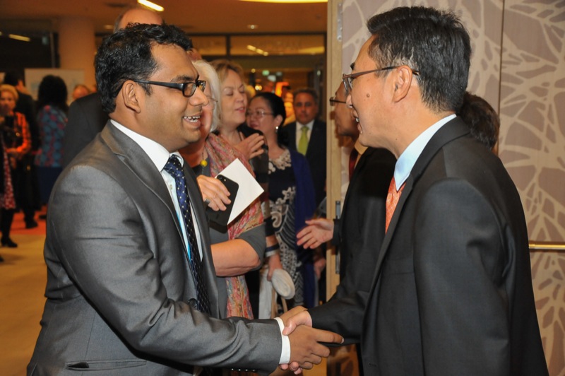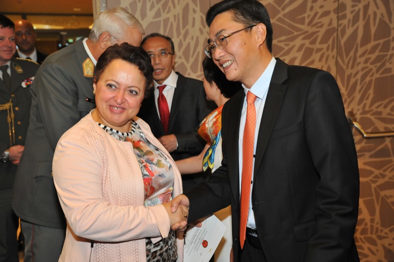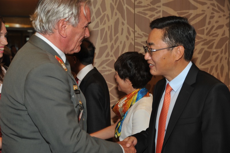 Anlässlich des Nationalfeiertages luden der Botschafter der Volksrepublik China in der Republik Österreich, S.E. LI Xiaosi, und Frau Huang Yan sowie der Ständige Vertreter der Volksrepublik China bei den UN und anderen internationalen Organisationen in Wien Herr Botschafter SHI Zhongjun zu einem Empfang in das Austria Trend Hotel Savoyen Vienna.
