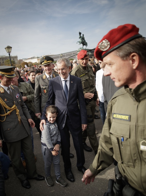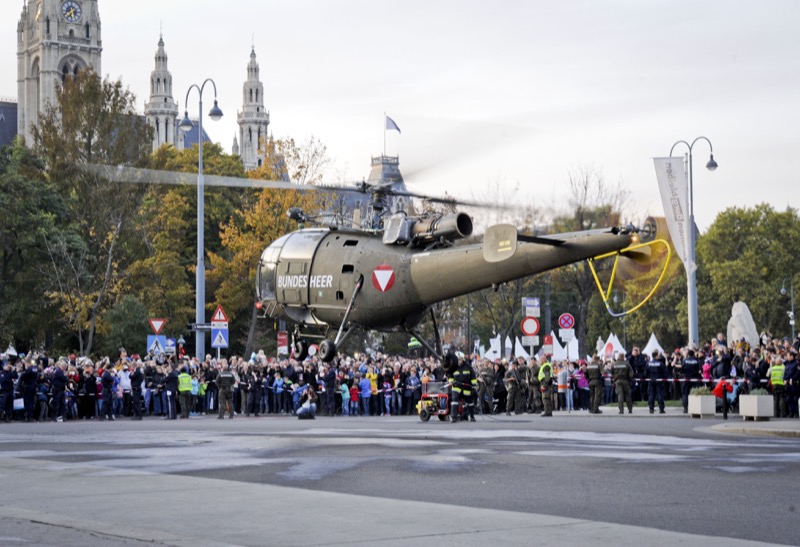 Der Nationalfeiertag 2017 begann in Wien traditionell mit den Kranzniederlegungen beim Äußeren Burgtor. Danach leisteten 1.321 Soldatinnen und Soldaten aus allen Bundesländern am Wiener Heldenplatz ihr Treuegelöbnis auf die Republik Österreich. Bundespräsident Van der Bellen, Bundeskanzler Kern und Verteidigungsminister Doskozil dankten den Rekruten für ihren Dienst und Einsatz zum Wohle der Bevölkerung. Die begleitende Leistunsschau des österr. Bundesheeres an sieben Standorten in Wien war auch heuer wieder ein voller Erfolg.