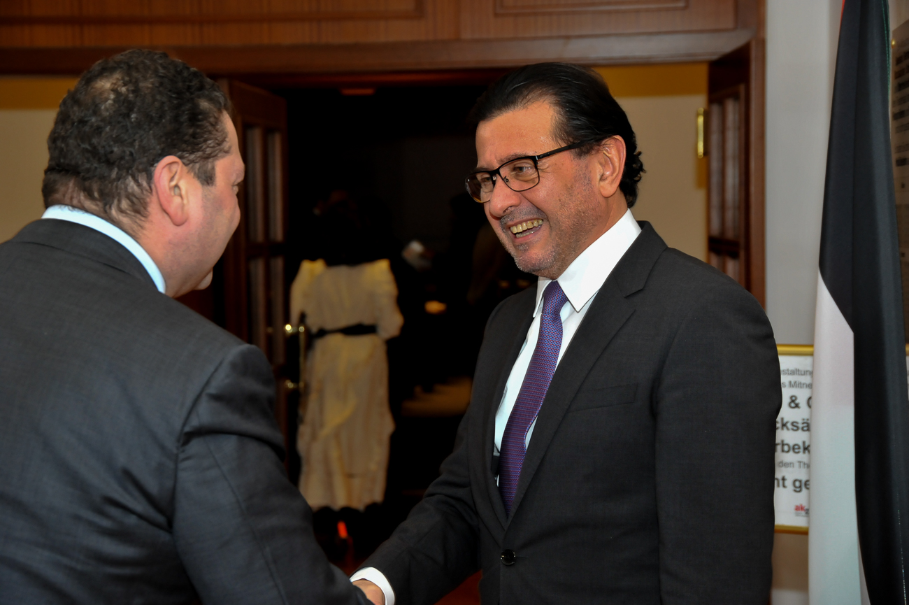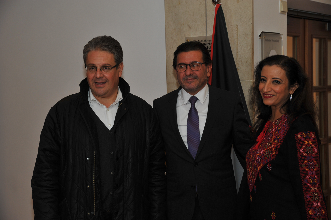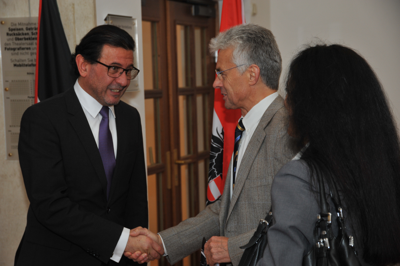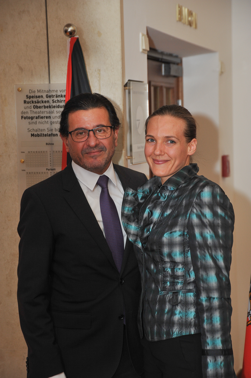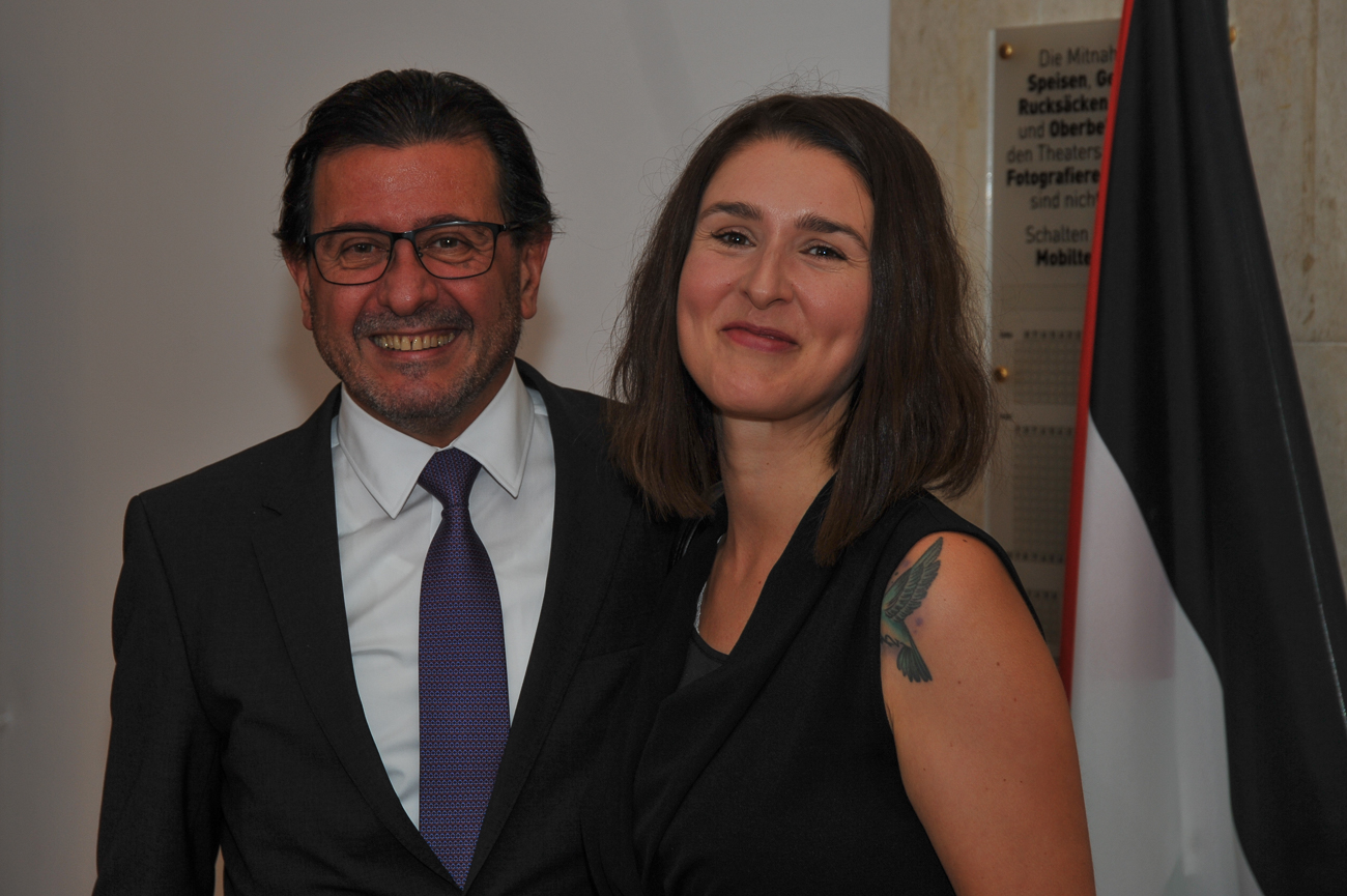 S.E. Salah Abdel Shafi, Botschafter Palästinas in Österreich, lud anlässlich des Nationalfeiertages zu einem kulturellen Abend mit den beiden Künstler Oumeima Khalil und Marwan Makhoul in das Theater Akzent. Im Anschluss gab es noch einen Empfang.