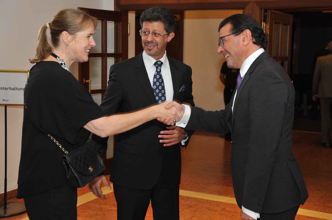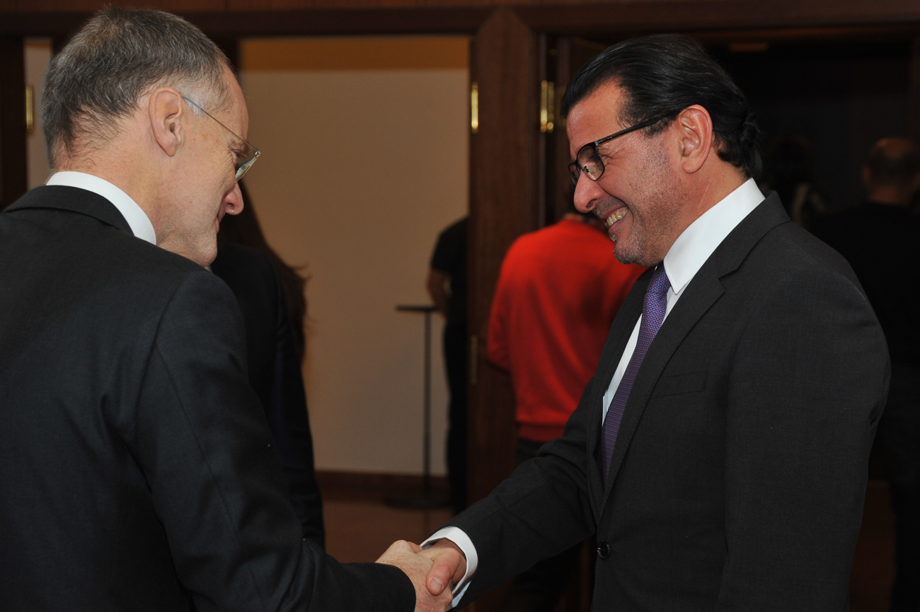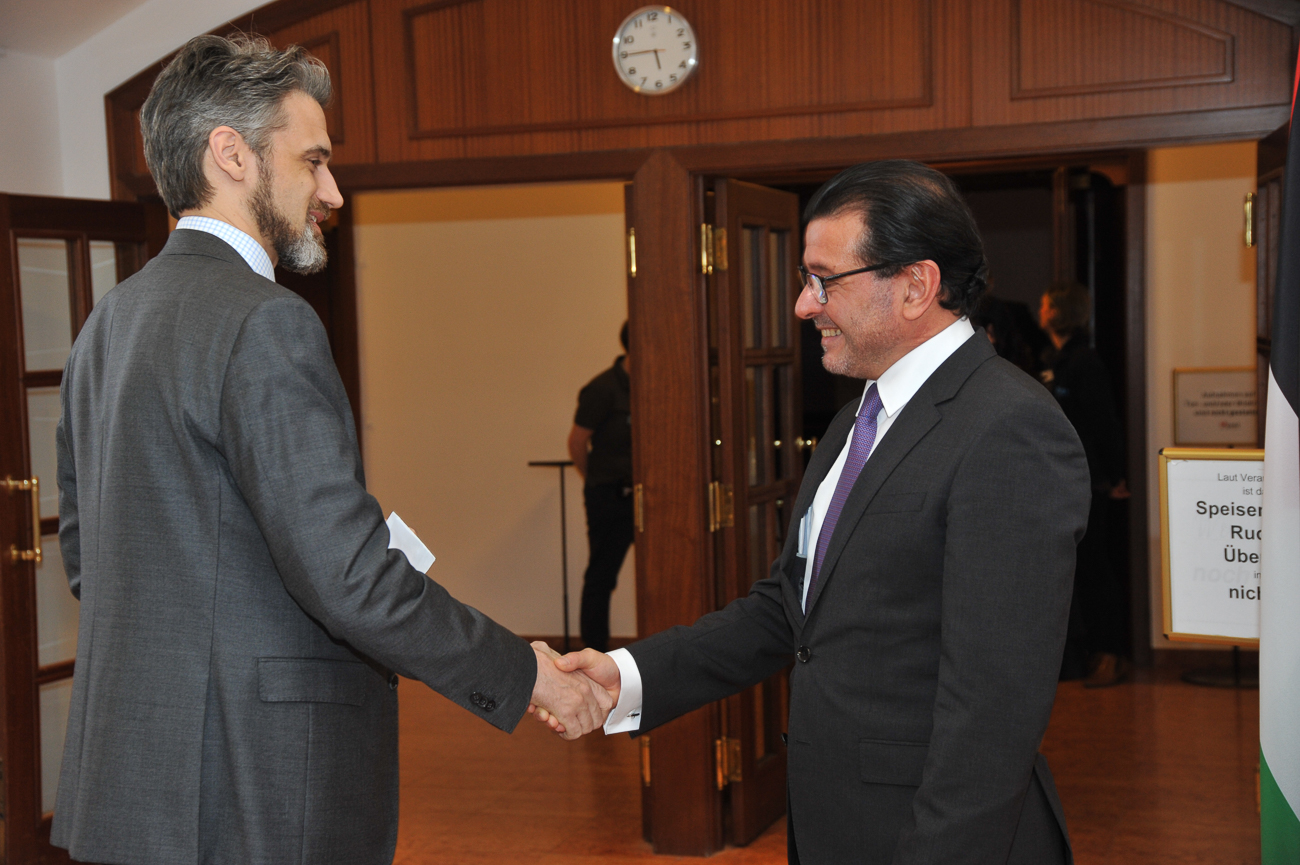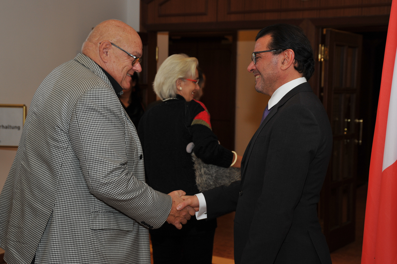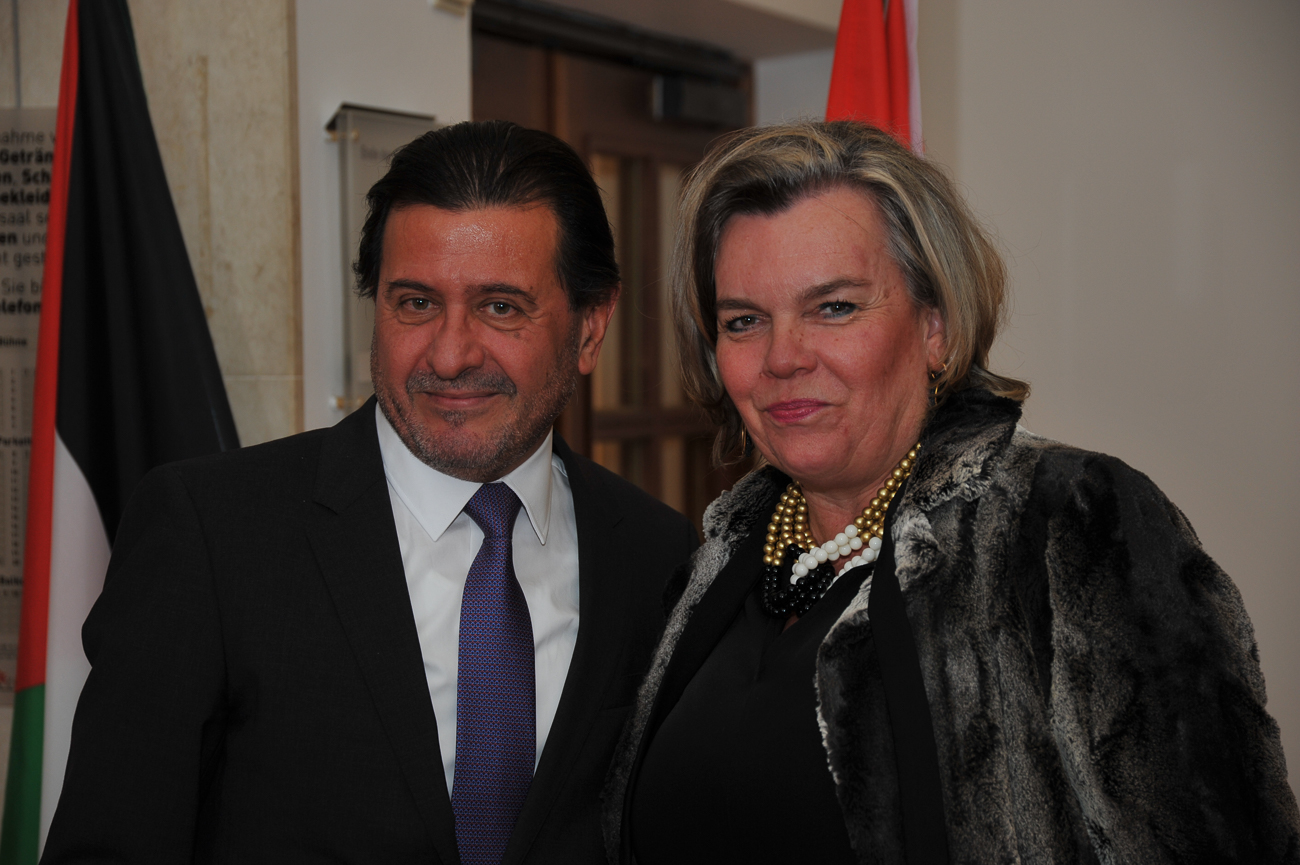 S.E. Salah Abdel Shafi, Botschafter Palästinas in Österreich, lud anlässlich des Nationalfeiertages zu einem kulturellen Abend mit den beiden Künstler Oumeima Khalil und Marwan Makhoul in das Theater Akzent. Im Anschluss gab es noch einen Empfang.