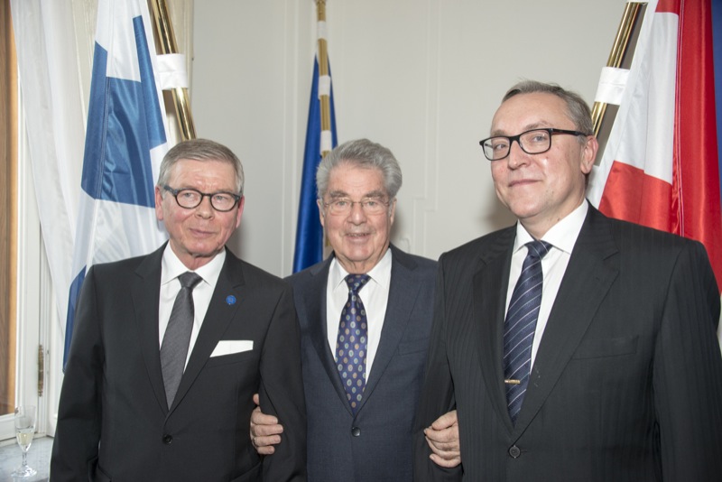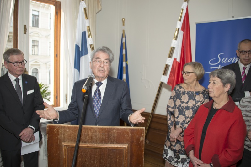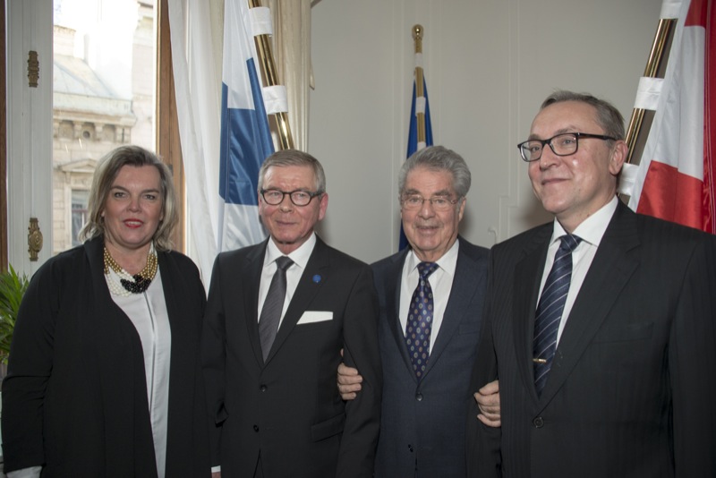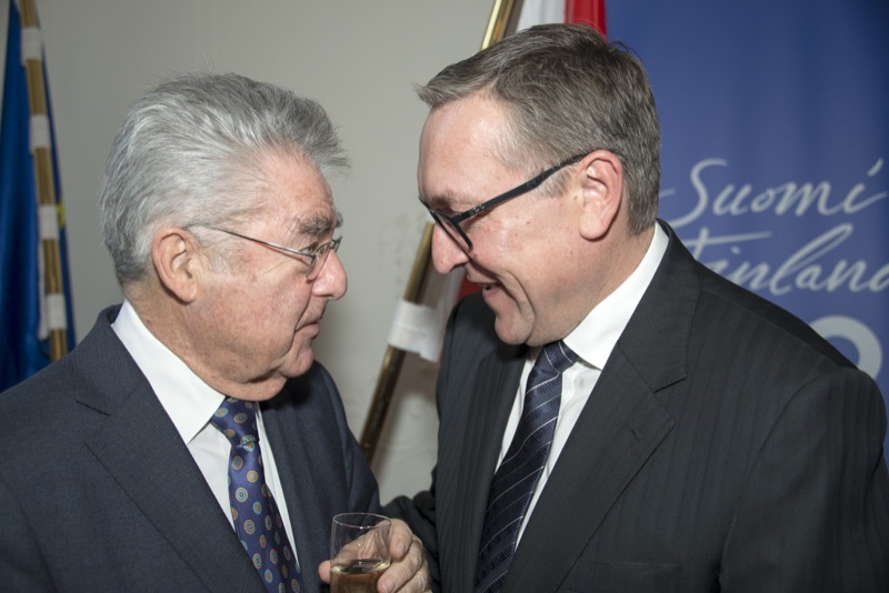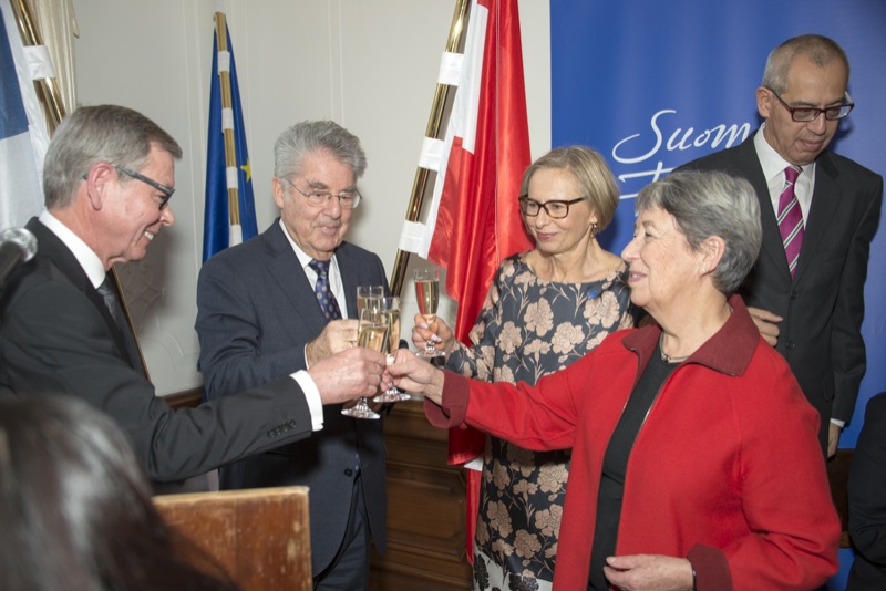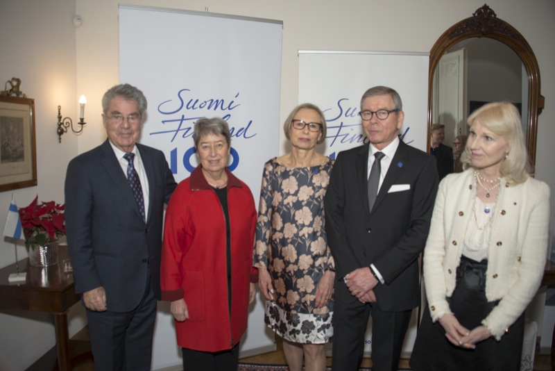 Anlässlich 100 Jahre Unabhängigkeit Finnlands luden der finnische Botschafter Hannu Kyröläinen mit seiner Gattin Arja Kyröläinen sowie die finnische OSZE-Botschafterin Päivi Laivola de Rosière zu einem Empfang in die Residenz des Botschafters.