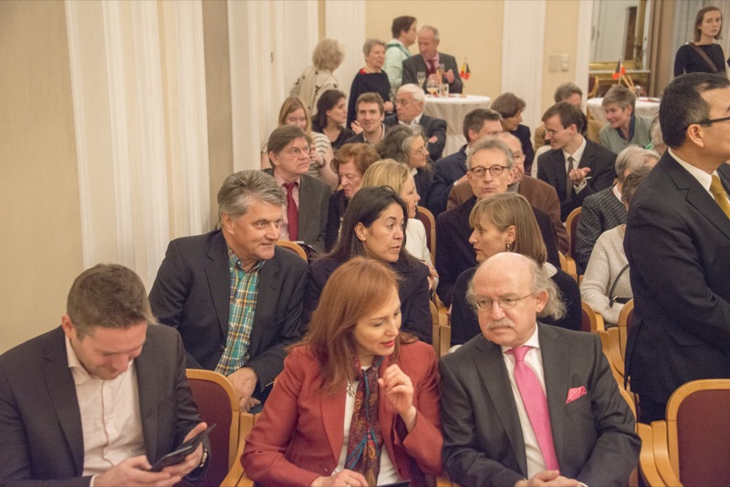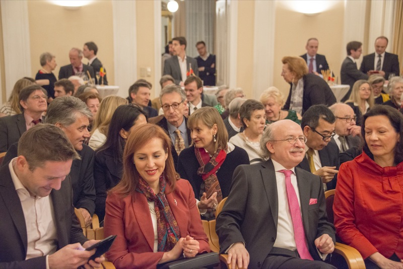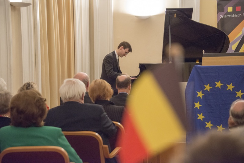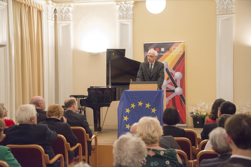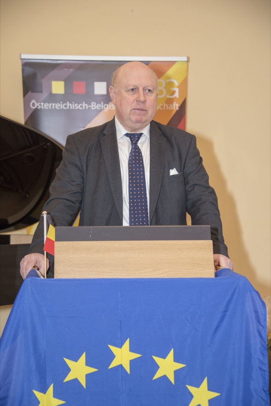 Der Ehrengast des Abends, der deutsche Botschafter, S.E. Johannes Haindl, hielt eine Rede zum Thema "Deutsch-belgisch-österreichische Beziehungen im 21. Jahrhundert anlässlich des historischen Jubiläums 1918-2018" und nach einer musikalischen Einlage von ÖBG-Mitglied Romuald Daems gab es ein Buffet mit belgischen Schmankerln.