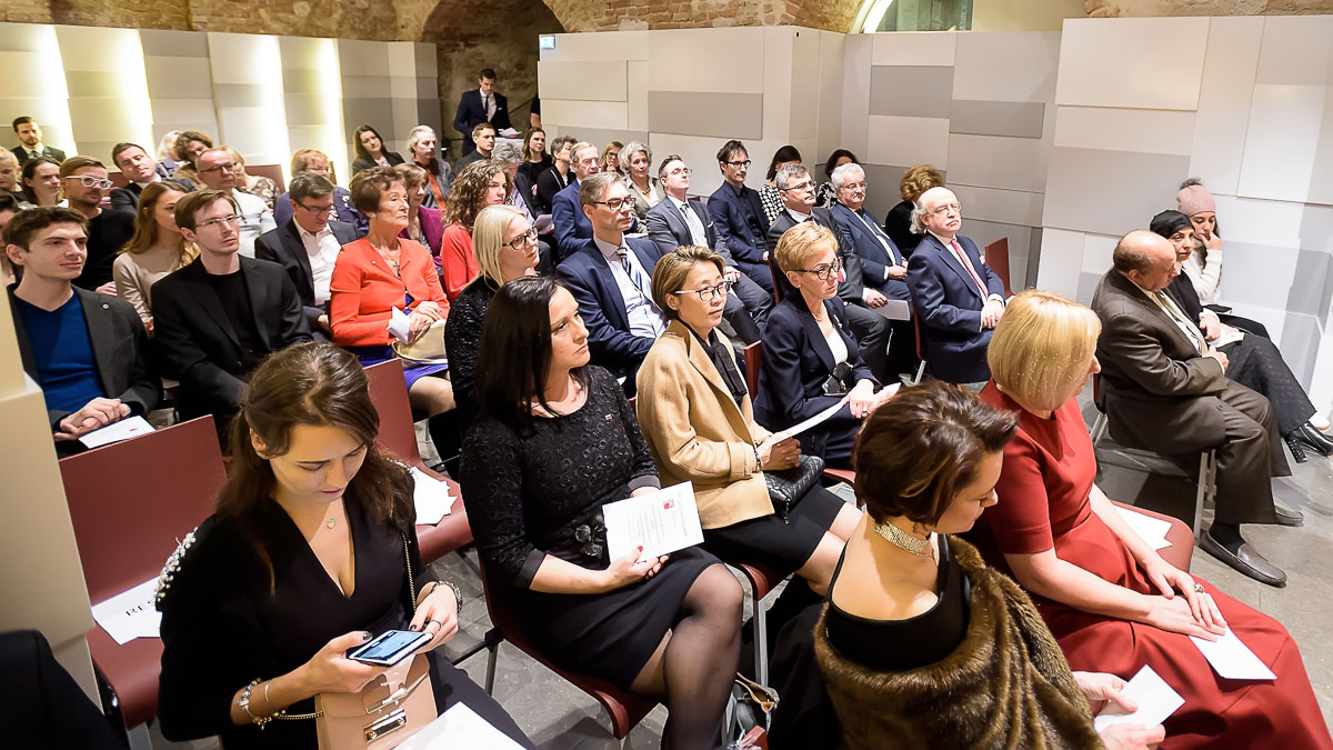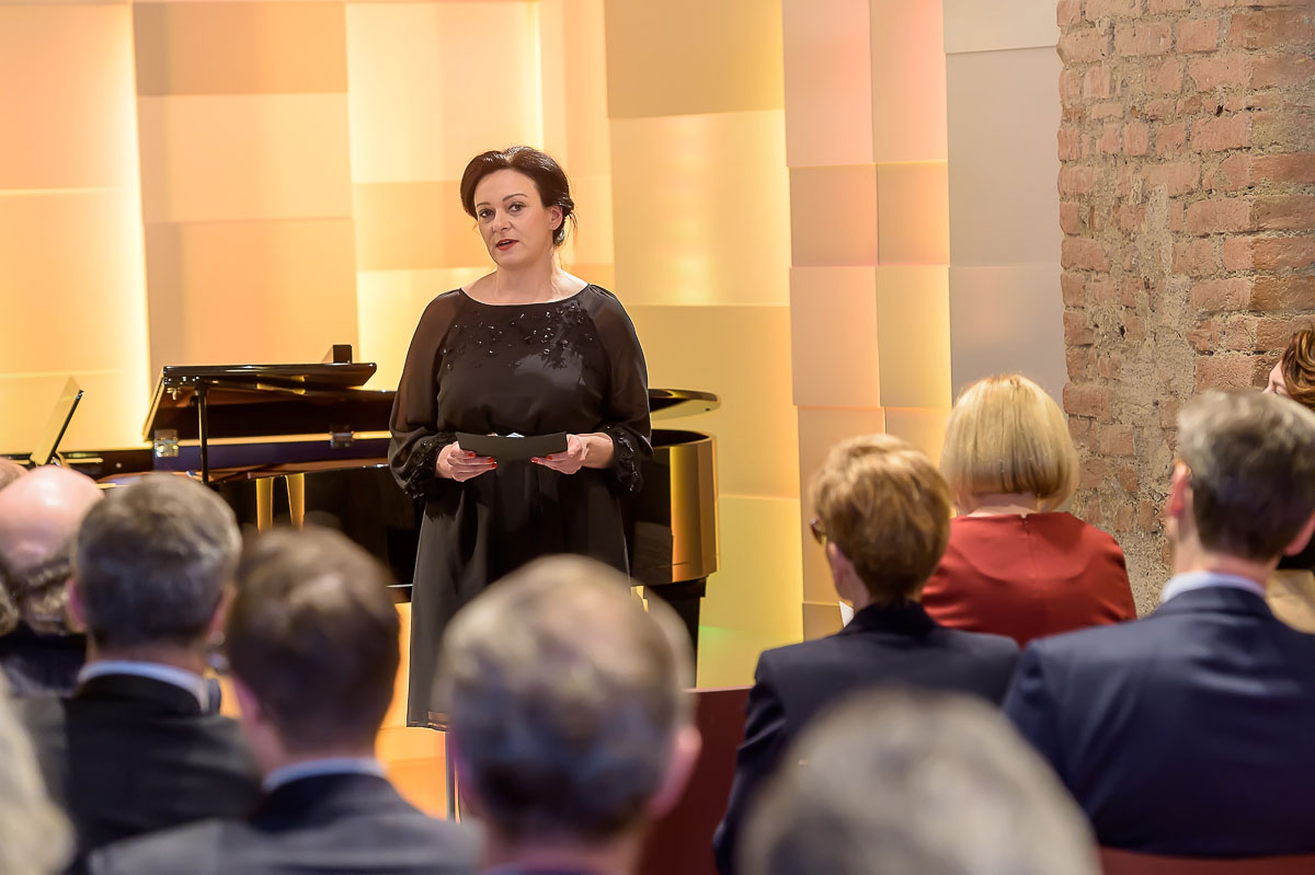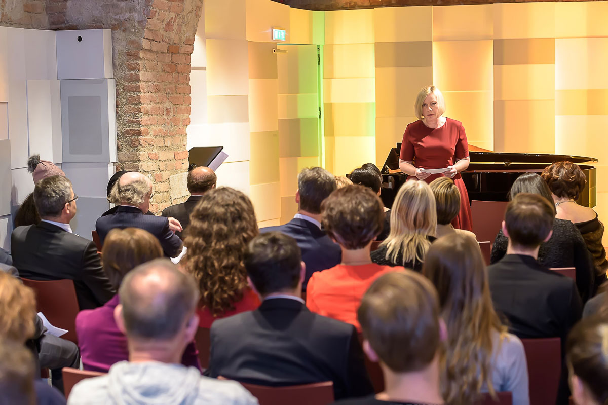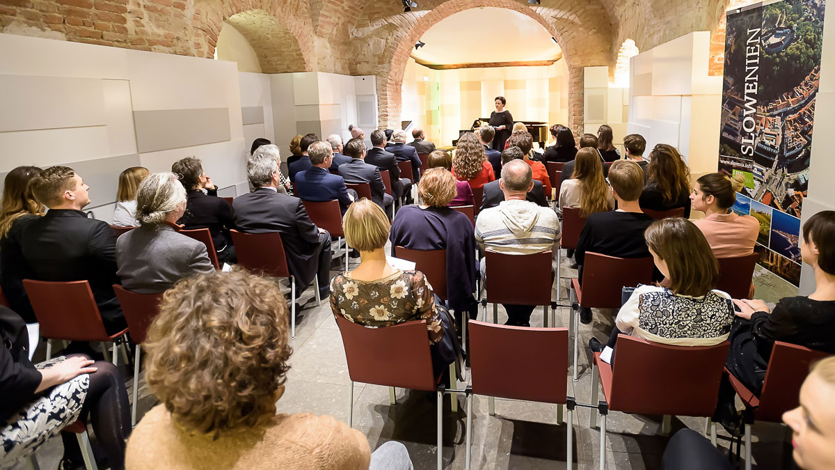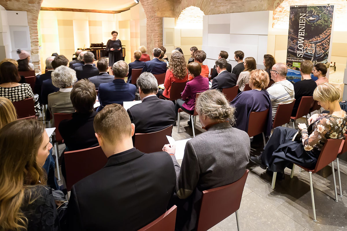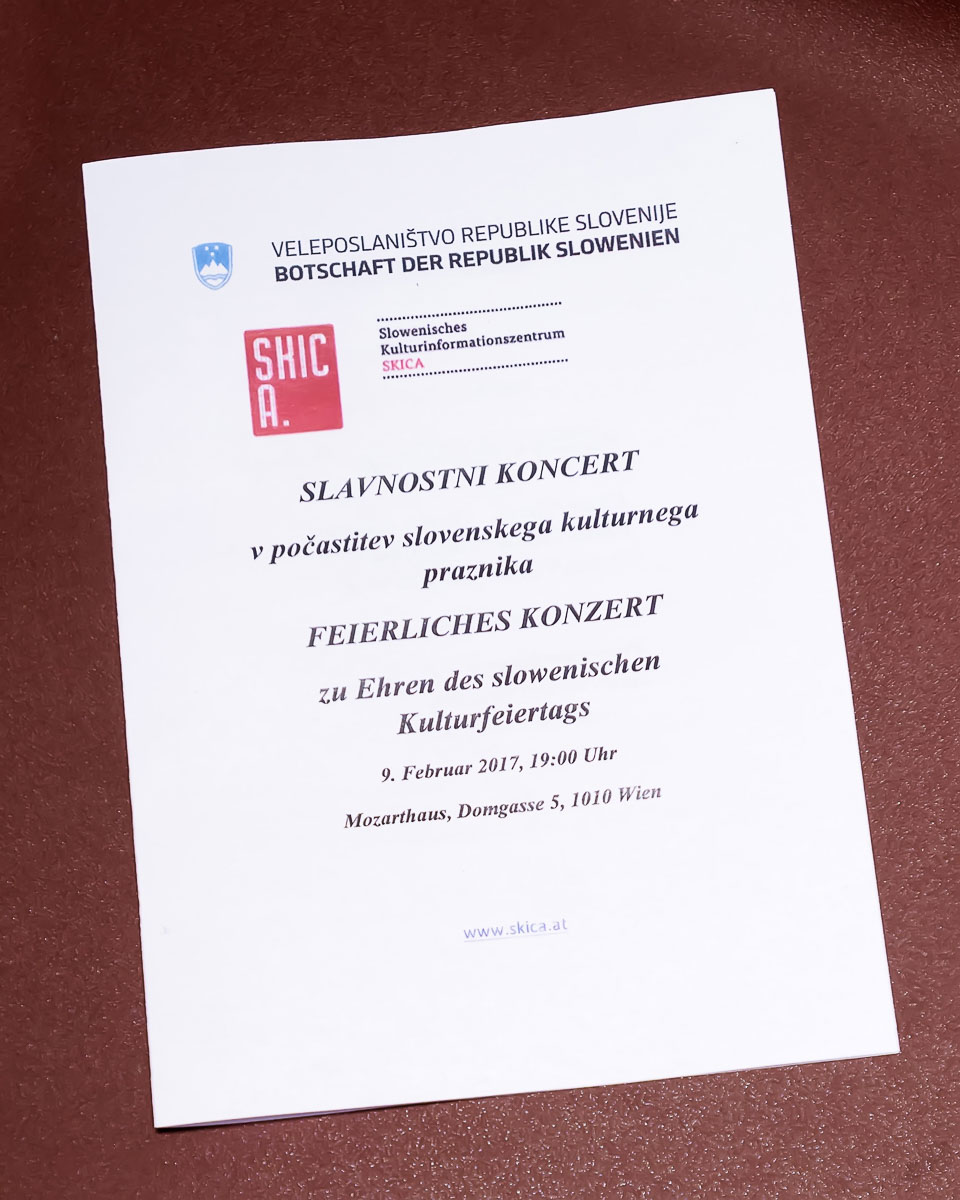 und das Slowenische Kulturinformationszentrum in Österreich – SKICA luden anlässlich des Slowenischen Kulturfeiertages zu einem feierlichen Konzert in das Mozarthaus ein. Nach einleitenden Worten von Barbara Kozelj Podlogar, Leiterin des Kulturinformationszentrums, sowie Grussworten von I.E. Ksenija Škrilec, Botschafterin der Republik Slowenien in Österreich, hielt die Staatssekretärin im Kulturministerium der Republik Slowenien, Damjana Pečnik, die Festrede.