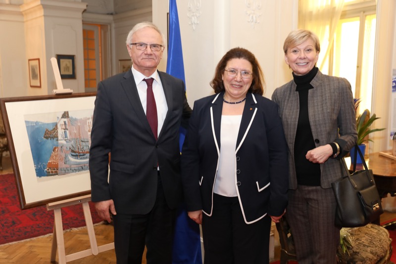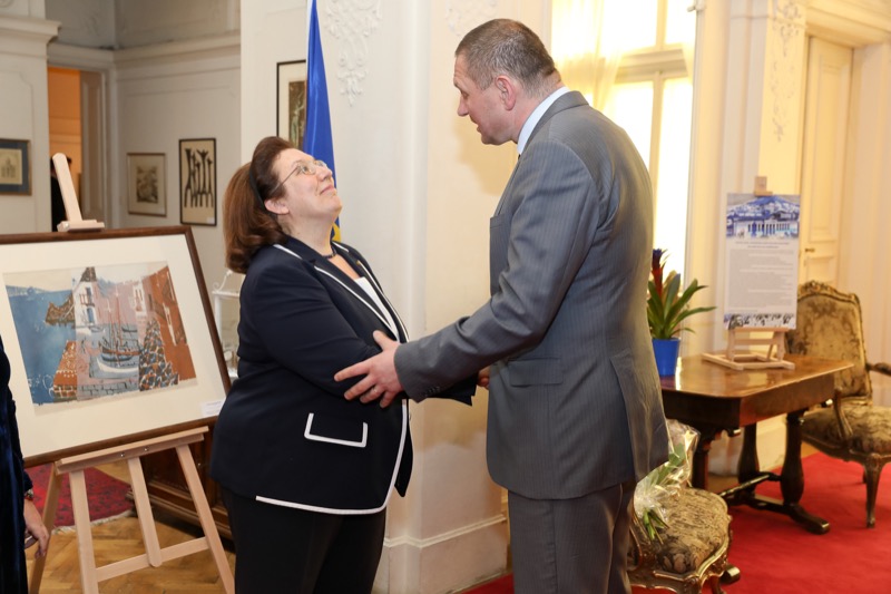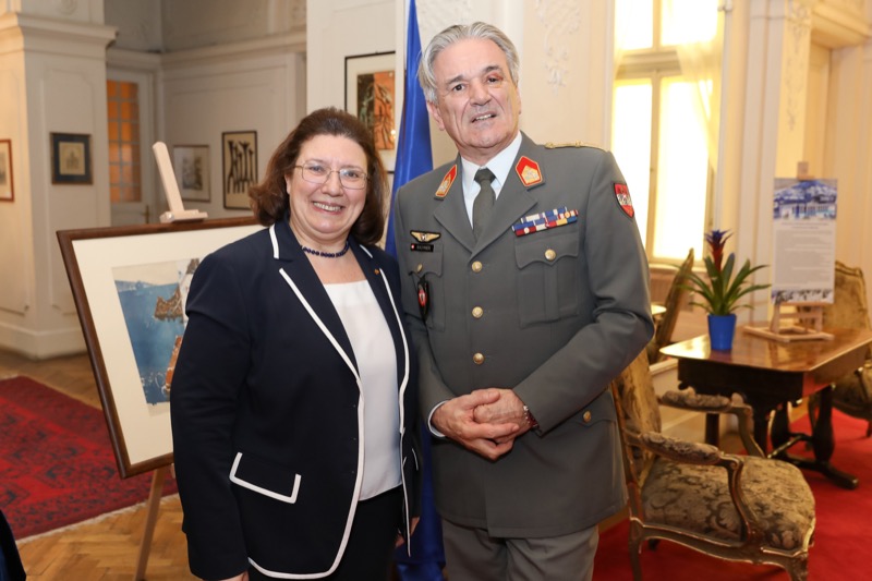 I.E. Chryssoula Aliferi, Botschafterin von Griechenland und ständige Vertreterin bei den internationalen Organisationen in Wien, lud anlässlich des Nationalfeiertages zur Ausstellung "Panorama Griechischer Gravüren" aus der Kollektion Kolliali in Ihre Residenz. Beim anschliessenden Empfang nutzte sie auch die Gelegenheit "auf Wiedersehen" zu sagen, da sie Wien demnächst verlassen wird.