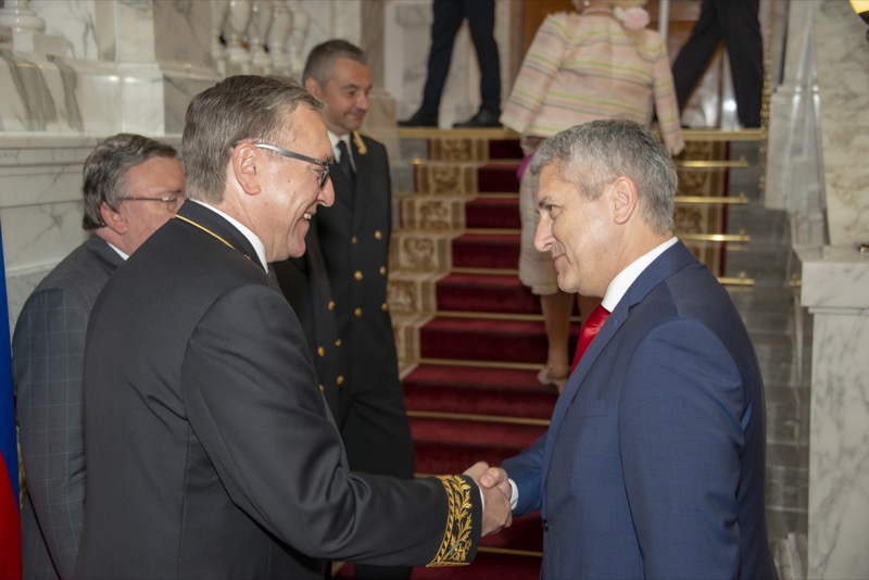 Der Botschafter der Russischen Föderation in der Republik Österreich, der Ständige Vertreter der Russischen Föderation bei den internationalen Organisationen in Wien sowie der Ständige Vertreter der Russischen Föderation bei der OSZE luden anlässlich des Nationalfeiertages von Russland zu einem Empfang in die Botschaft.