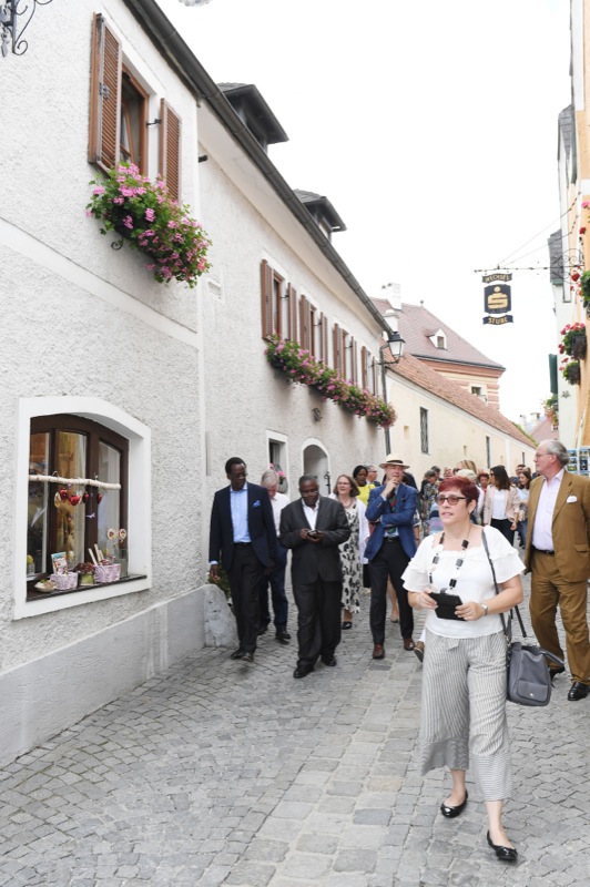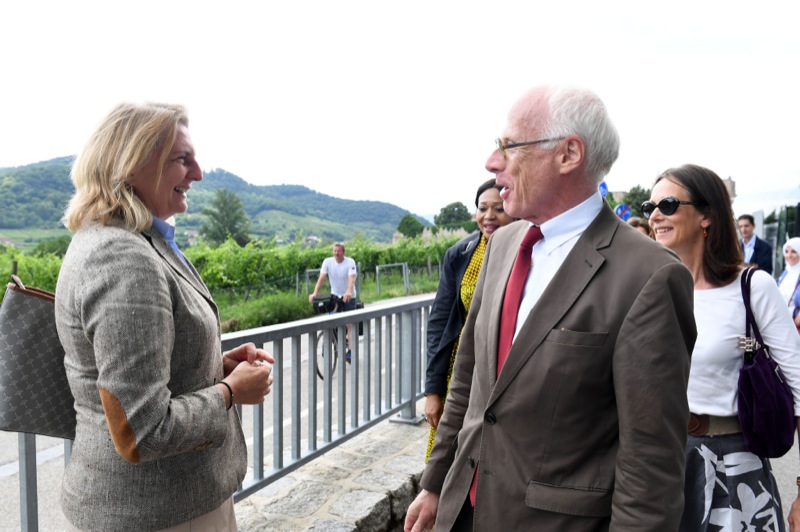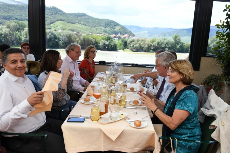 Außenministerin Karin Kneissl lud die LeiterInnen der Internationalen Organisationen, der OSZE und der ständigen Vertretungen in Wien sowie die bilateralen BotschafterInnen in Österreich zum alljährlichen Frühlingsausflug ein. Ort des Geschehens war diesmal die Wachau - nach dem Besuch des Unternehmens BIOMIN in Getzersdorf und einer Bootsfahrt mit Brandner Schifffahrt von Krems nach Dürnstein gab es ein gemeinsames Mittagessen im Schloss Dürnstein. Danach ging es noch in das Schloss Grafenegg. Cercle Diplomatique war durch seine beiden Herausgeber, Andrea Fürnweger und Alexander Bursky, vertreten.