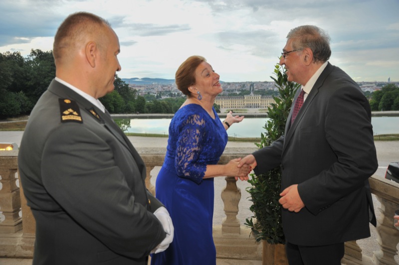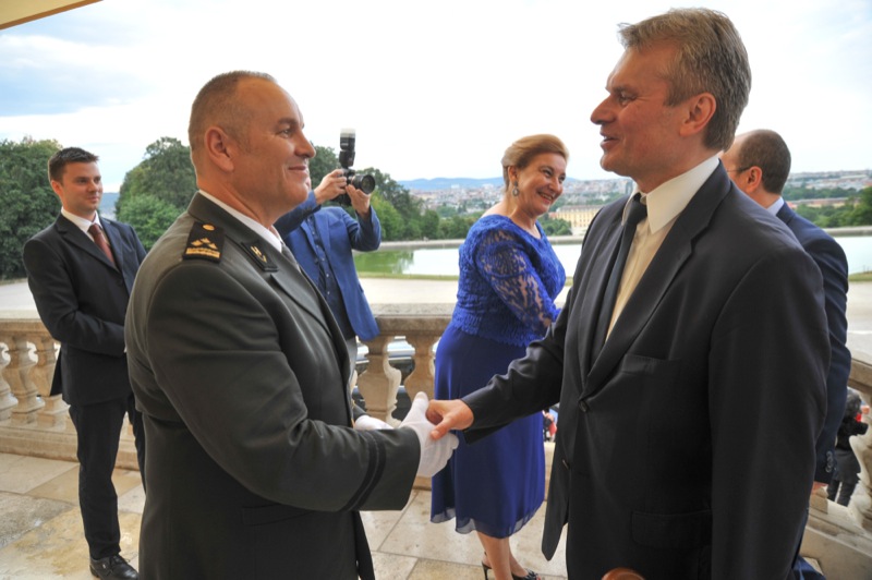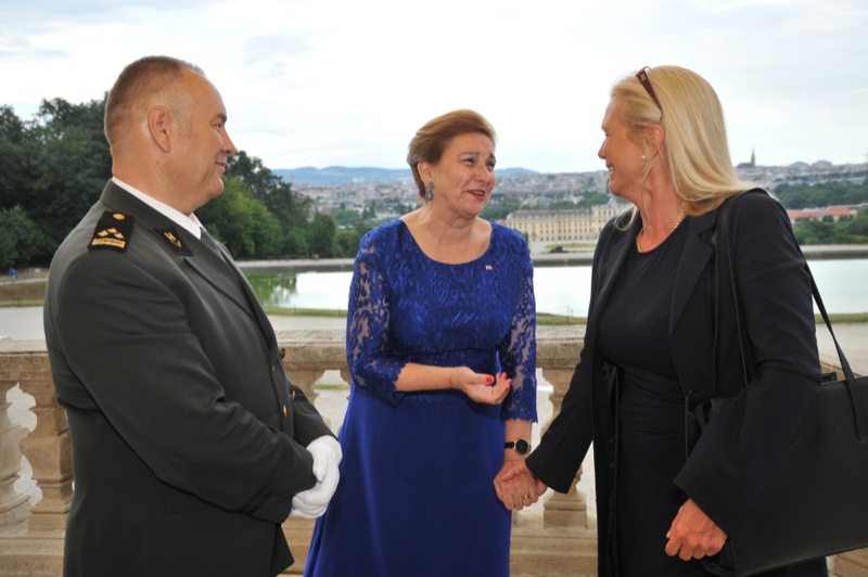 Anlässlich des kroatischen Nationalfeiertages, des Tages der Streitkräfte und des 5. Jahrestages des EU-Beitritts der Republik Kroatien luden die Botschafterin der Republik Kroatien, I.E. Vesna Cvjetković, und der Verteidigungsattaché Oberst Davor Kopanji, zu einem Empfang in das Café Gloriette in Schönbrunn.