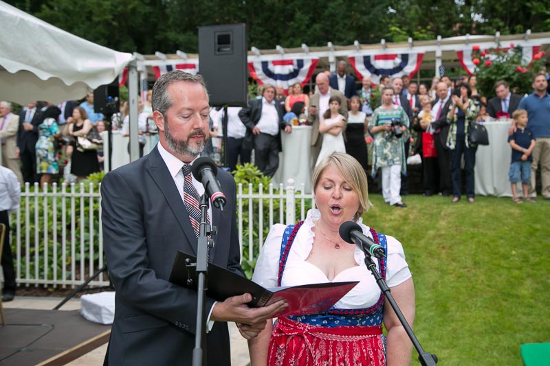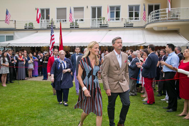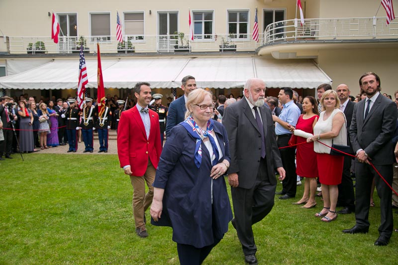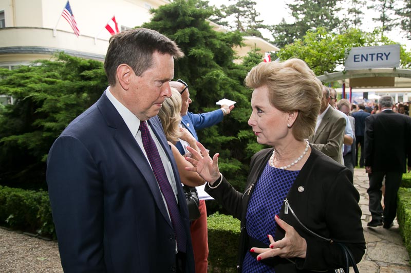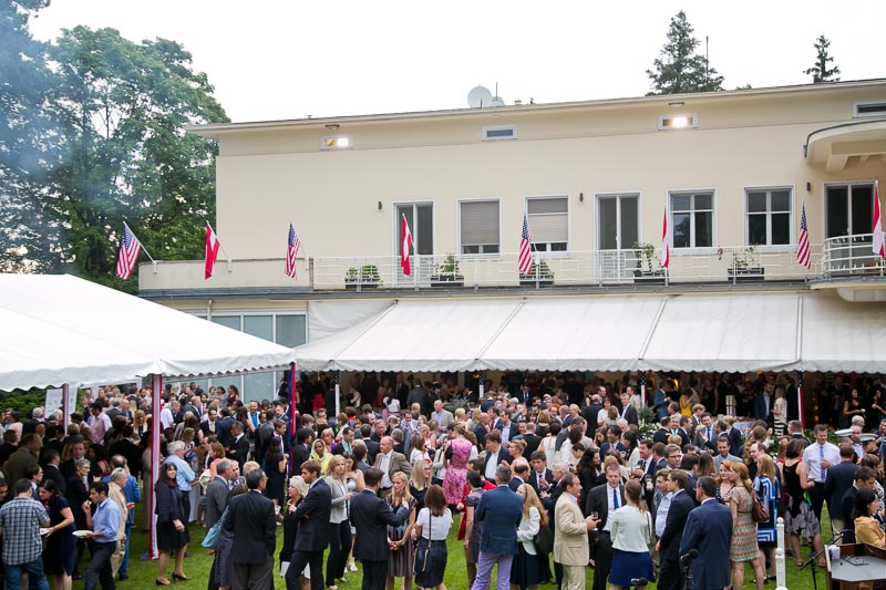 Bei traumhaftem Wetter feierten die Vereinigten Staaten von Amerika ihren Unabhängigkeitstag mit einer grossen Gartenparty. I.E. Alexa Wesner, Botschafterin in Österreich, und Blaine F. Wesner, I.E. Laura E. Kennedy, Botschafterin bei den Internationalen Organisationen, und John J. Feeney sowie S.E. Daniel B. Baer, Botschafter bei der OSCE, und Dr. Brian J. Walsh empfingen unzählige Gäste in der Residenz.