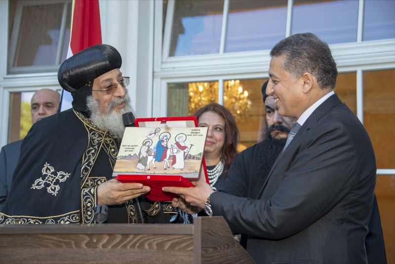 Anlässlich des Nationalfeiertages der arabischen Republik Ägypten luden der Botschafter sowie ständige Vertreter Ägyptens bei den internationalen Organisationen, S.E. Omar Amer Youssef, mit seiner Frau zu einem Empfang in die Botschaft. Als besonderer Ehrengast wurde Papst Tawadros II., Patriach von Alexandrien und Kirchenoberhaupt der koptisch-orthodoxen Kirche, begrüsst.