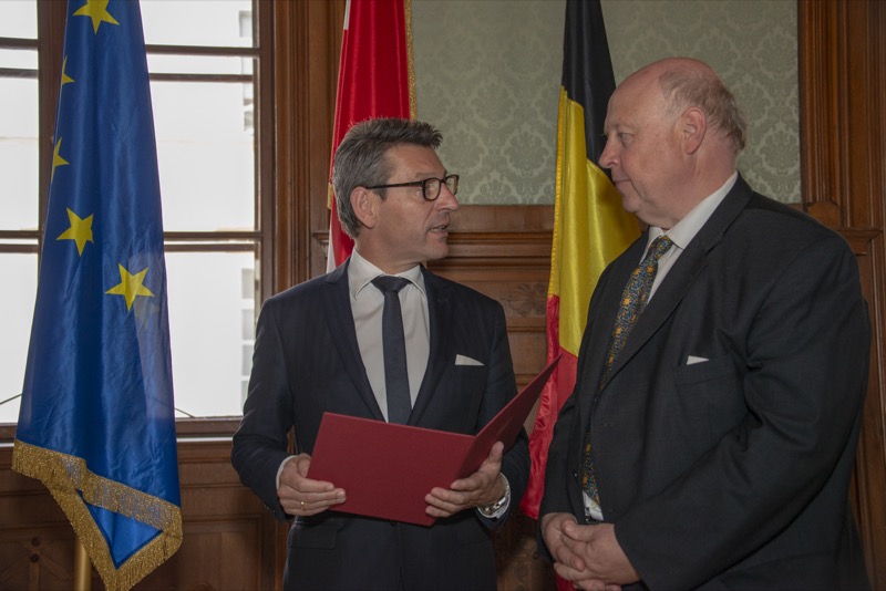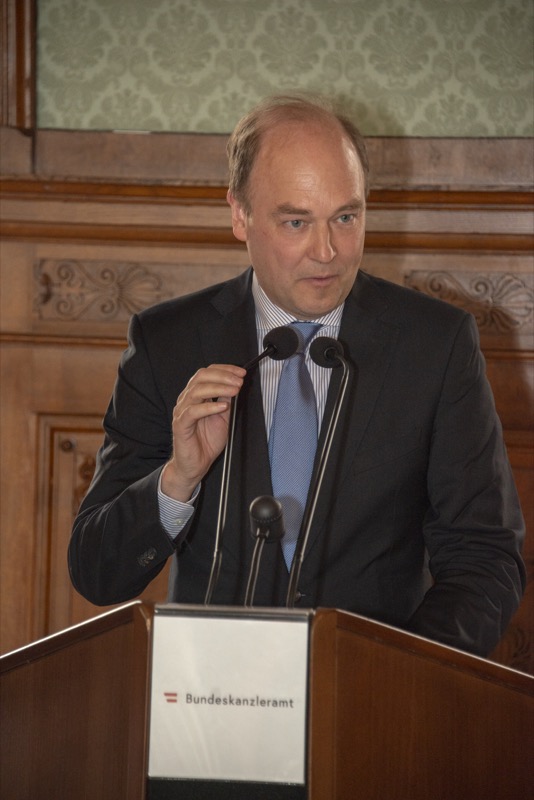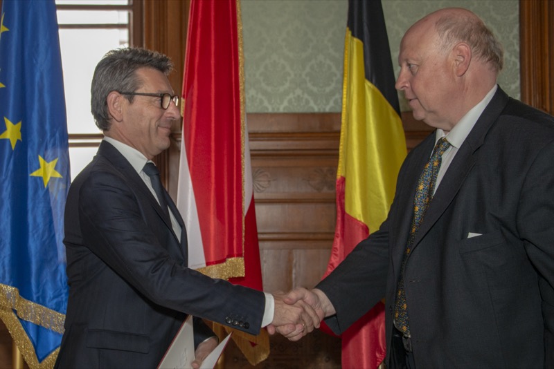 Die Überreichung i.v. des Bundeskanzlers wurde vom Sektionschef Mag. Jürgen Meindl, ehemaliger Botschafter Österreichs in Belgien übernommen.