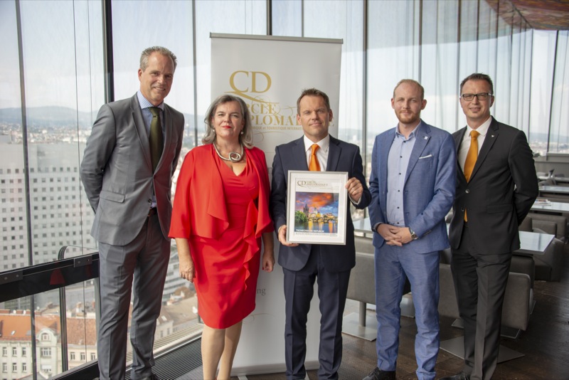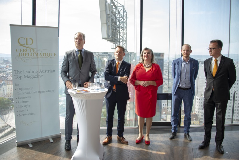 Zur Präsentation der neuen Ausgabe luden die Herausgeber von CERCLE DIPLOMATIQUE, Andrea Fürnweger & Alexander Bursky, gemeinsam mit Generaldirektor Peter Katusak-Huzsvar in DAS LOFT im 18. Stock des SO/VIENNA (ehemalige Sofitel Vienna Stephansdom).