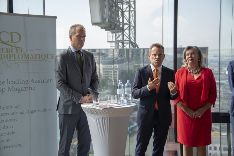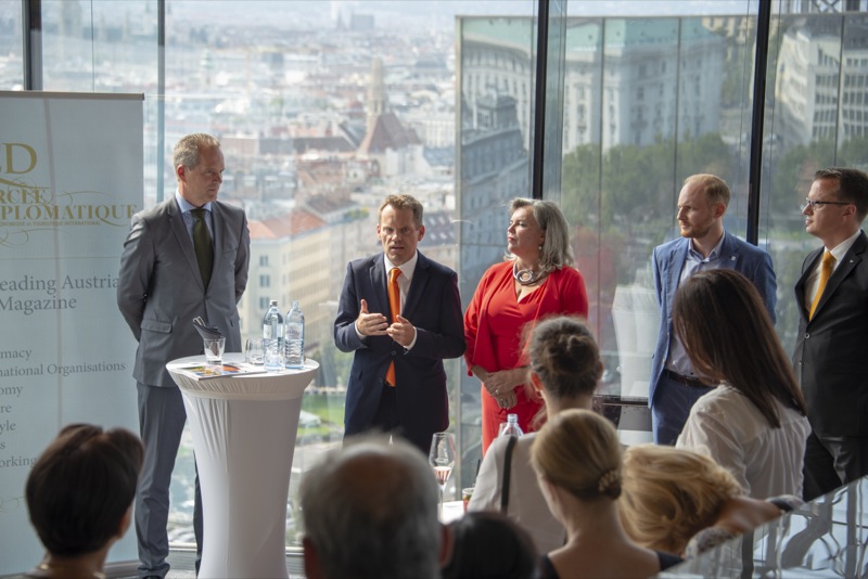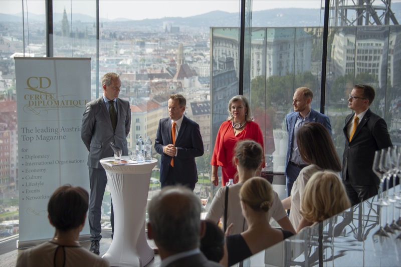 Nach kurzen Begrüssungsworten von Alexander Bursky, Cercle Diplomatique, Markus Sorgo, stv. Verkaufsdirektor SO/VIENNA, Christoph Horak, Verkaufsdirektor Accor Hotels, und Jakub Novák, Ständiger Vertreter der Botschafterin der Tschechischen Republik, konnten die über 100 Gäste aus Diplomatie, Wirtschaft, Politik und Kunst&Kultur nicht nur den traumhaften Ausblick über die Stadt und köstliches finger-food geniessen, sondern auch interessante Gespräche führen und neue Kontakte knüpfen.