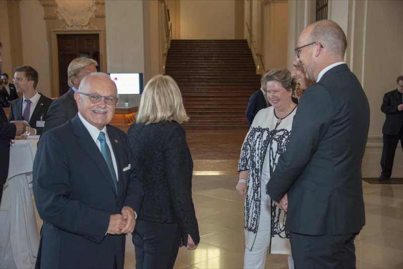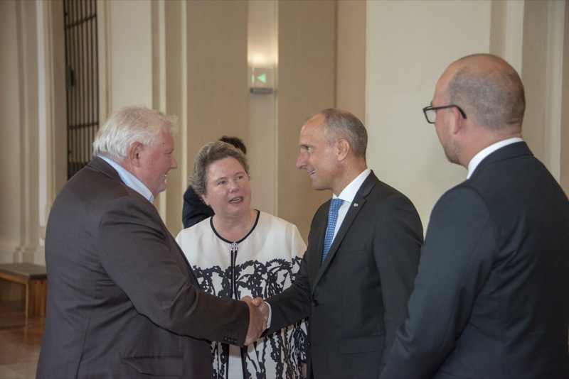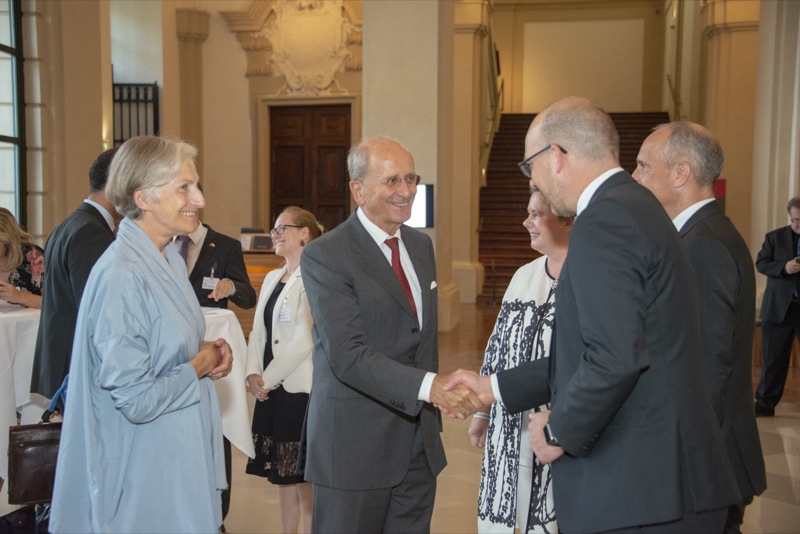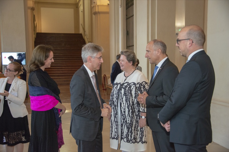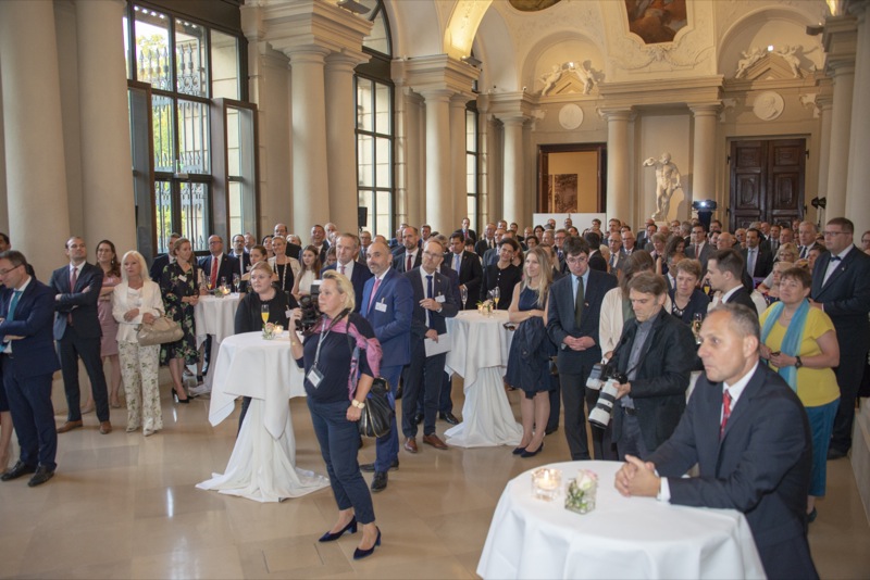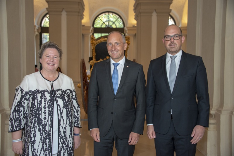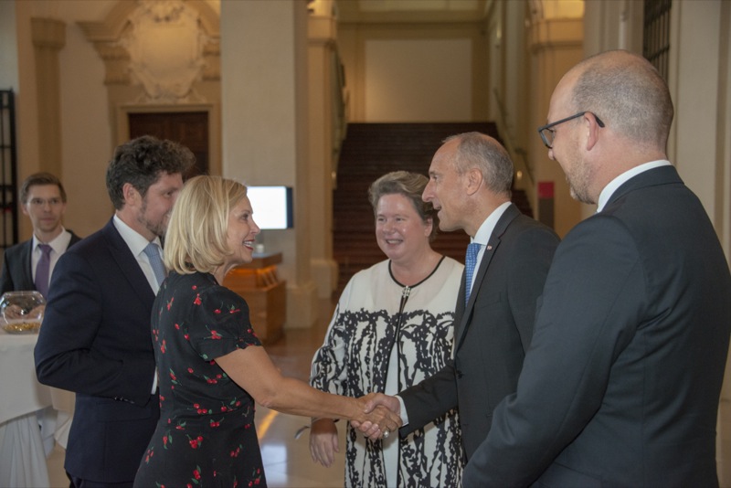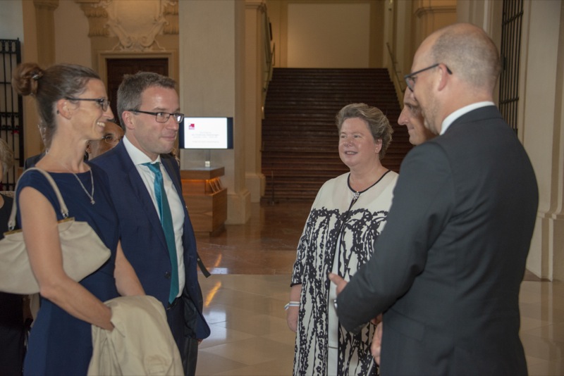 Die Botschafterin des Fürstentums Liechtenstein, in Österreich, I.D. Maria-Pia Kothbauer, lud zu einem Empfang in das Gartenpalais Liechtenstein. Besondere Gäste waren auch der Regierungschef und Minister für Präsidiales und Finanzen, S.E. Adrian Hasler, sowie S.E. Regierungschef-Stellvertreter Dr. Daniel Risch, Minister für Infrastruktur, Wirtschaft und Sport.