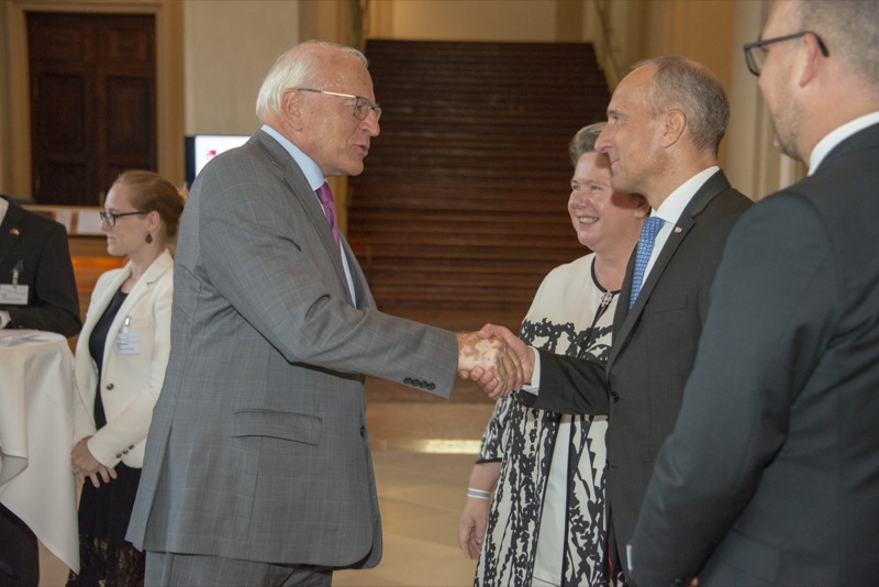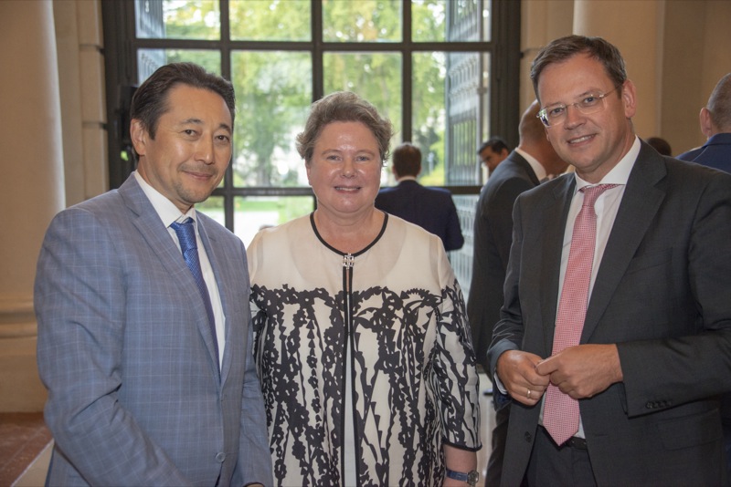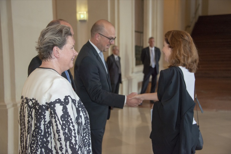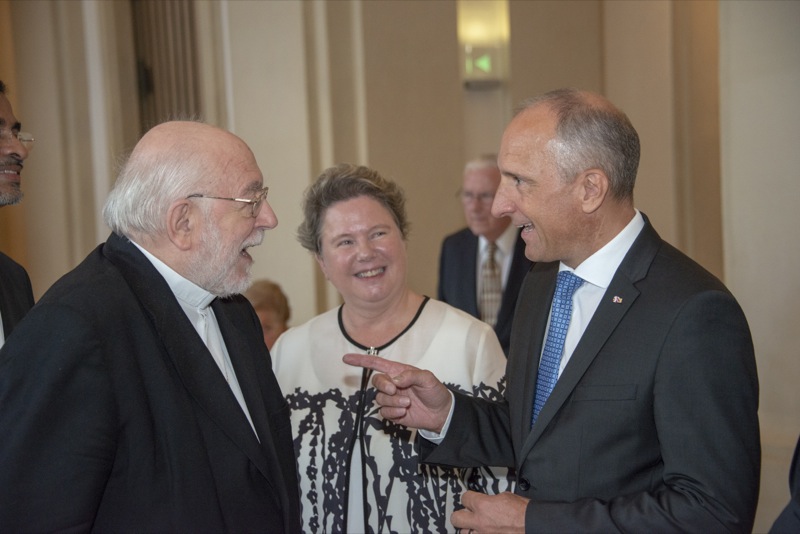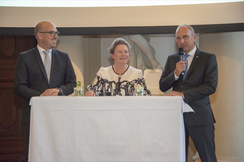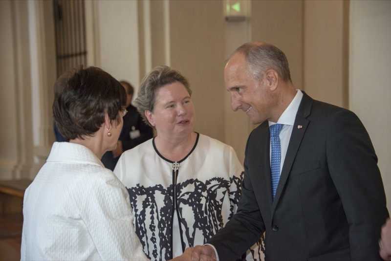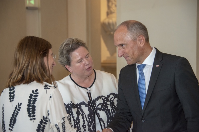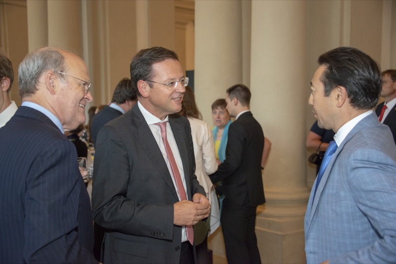 Die Botschafterin des Fürstentums Liechtenstein, in Österreich, I.D. Maria-Pia Kothbauer, lud zu einem Empfang in das Gartenpalais Liechtenstein. Besondere Gäste waren auch der Regierungschef und Minister für Präsidiales und Finanzen, S.E. Adrian Hasler, sowie S.E. Regierungschef-Stellvertreter Dr. Daniel Risch, Minister für Infrastruktur, Wirtschaft und Sport.