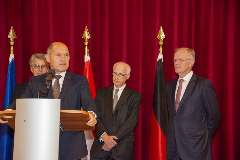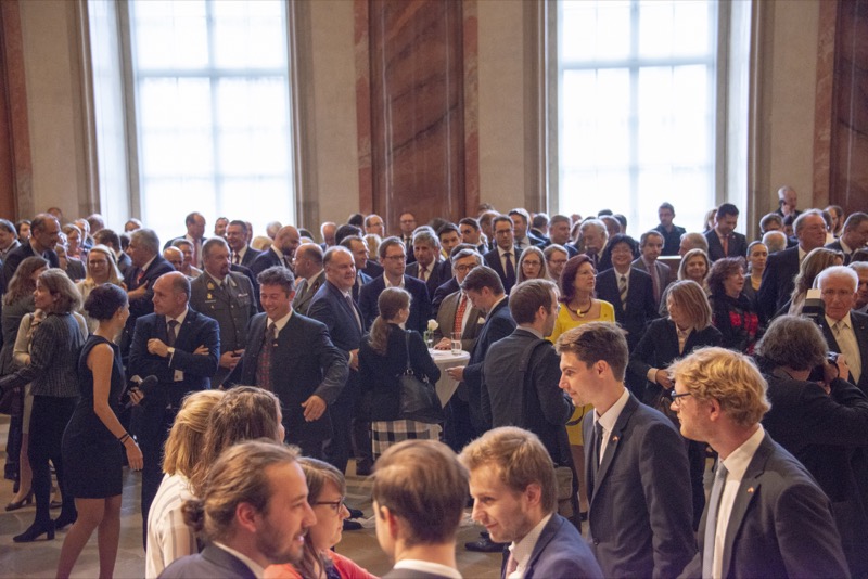 Anlässlich des Tages der Deutschen Einheit luden der Botschafter der Bundesrepublik Deutschland, S.E. Johannes Haindl, der Ständige Vertreter bei den Internationalen Organisationen, Gerhard Küntzle und der Ständige Vertreter bei der OSZE, Herr Eberhard Pohl zu einem Empfang in das Gartenpalais Liechtenstein.