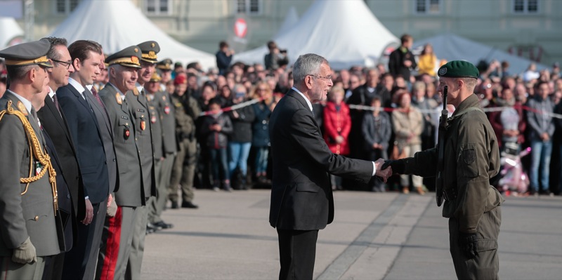 Nächster Programmpunkt war am Vormittag die feierliche Angelobung von 1.032 Rekrutinnen und Rekruten. Dabei hatten u.a. Bundespräsident Alexander Van der Bellen und Bundeskanzler Sebastian Kurz Reden gehalten.
