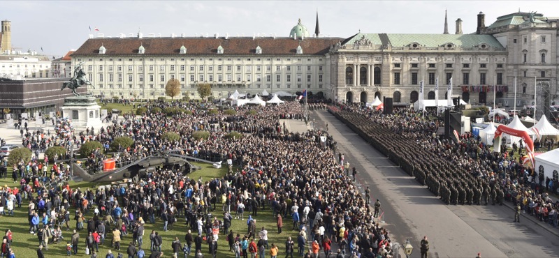 Neben der Leistungsschau des Heeres mit Hubschraubern und Panzern zum Angreifen an mehreren Standorten in der Innenstadt öffnen zahlreiche Institutionen und Ministerien ihre Tore. Mit dabei waren etwa das Parlament im derzeitigen Ersatzquartier in der Hofburg, die Präsidentschaftskanzlei oder das Bundeskanzleramt.