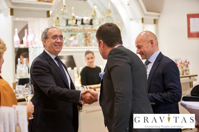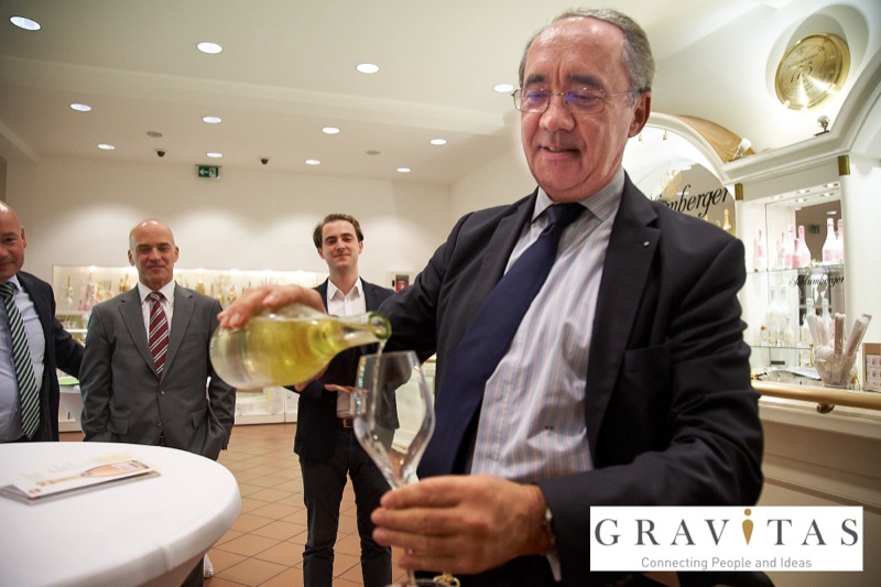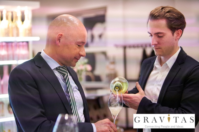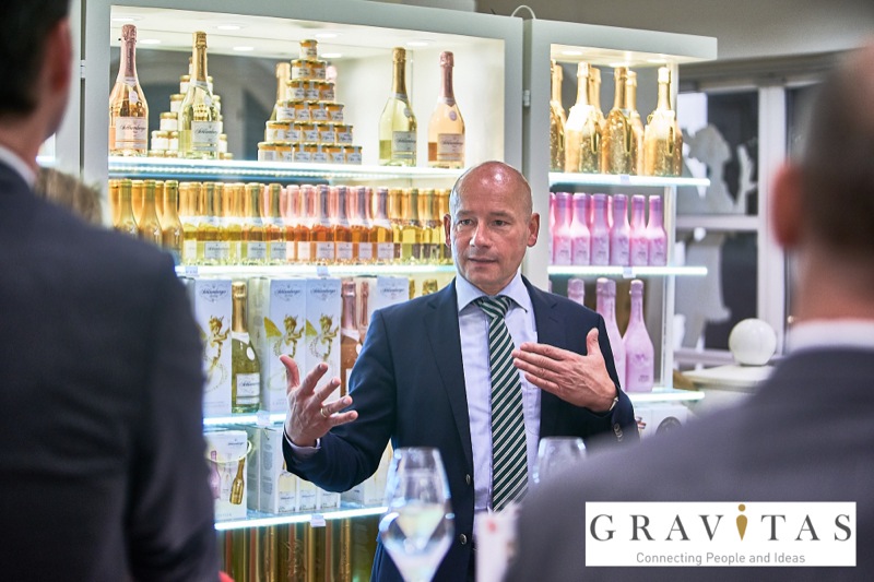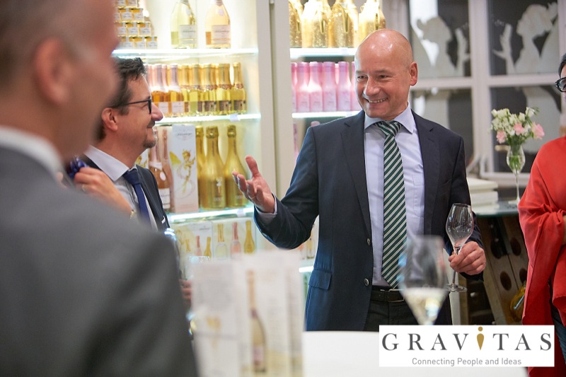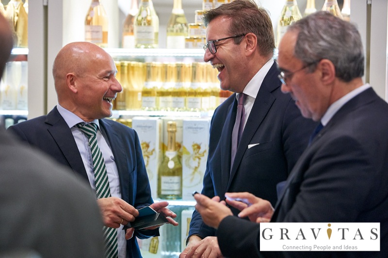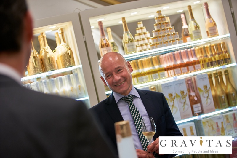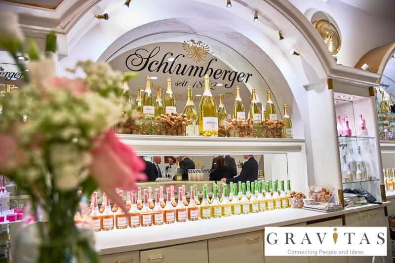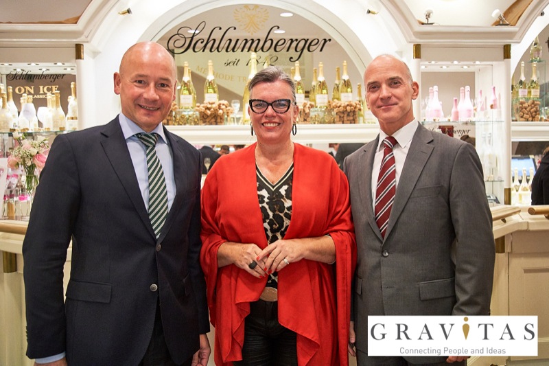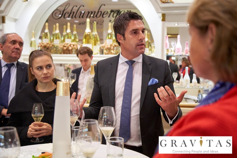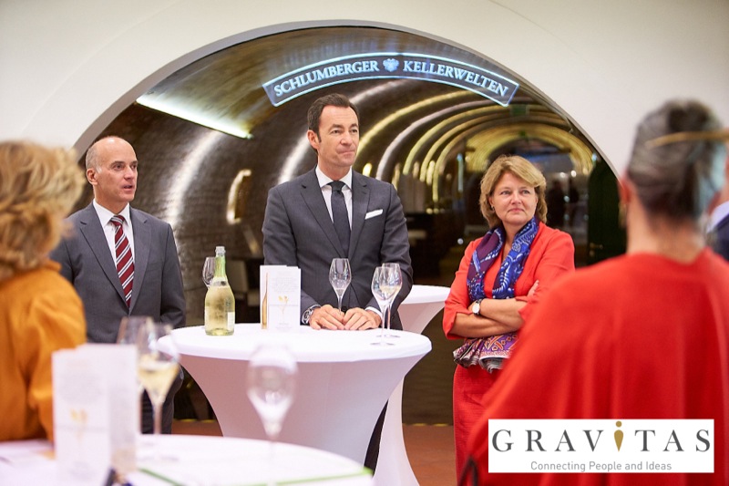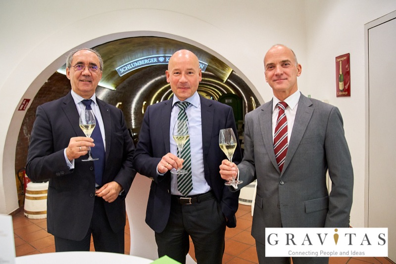 Karoly Pataki, CEO von Gravitas Business Networking Strategy & Consulting GmbH, lud zum Kamingespräch mit Arno Lippert, Vorstandsvorsitzender der Schlumberger AG, in die Schlumberger Kellerwelten. Die interessierten Gäste konnten nicht nur mehr über die Marke Schlumberger erfahren sondern auch deren Produkte verkosten.