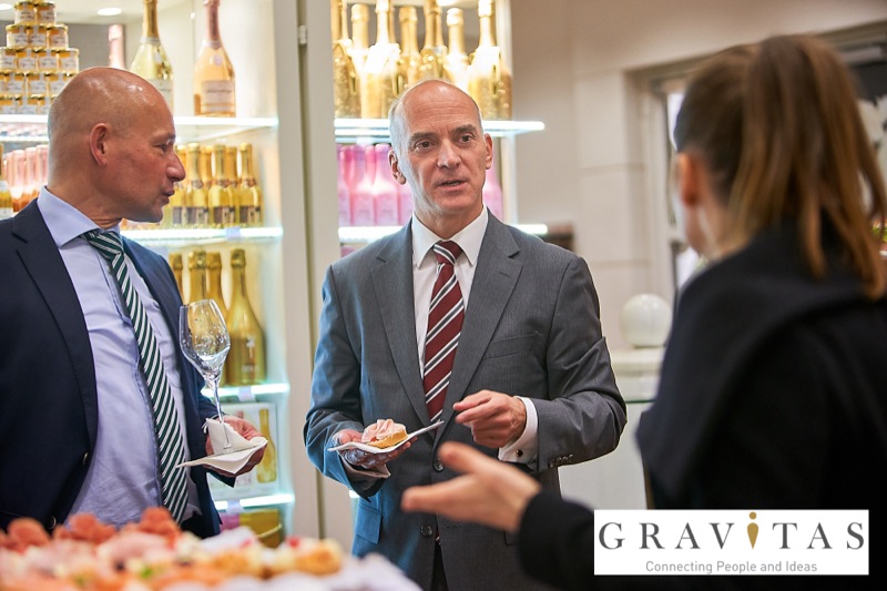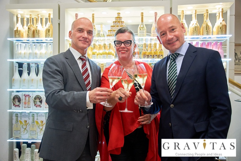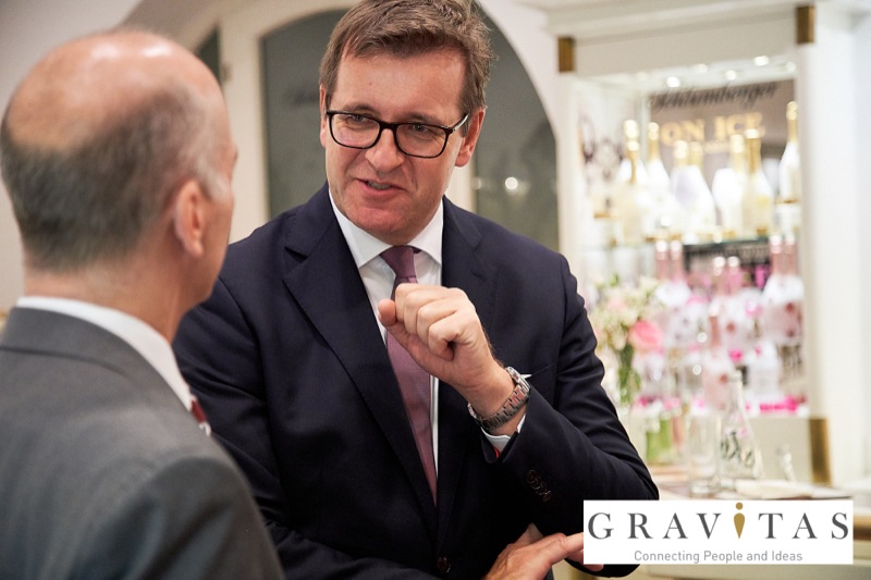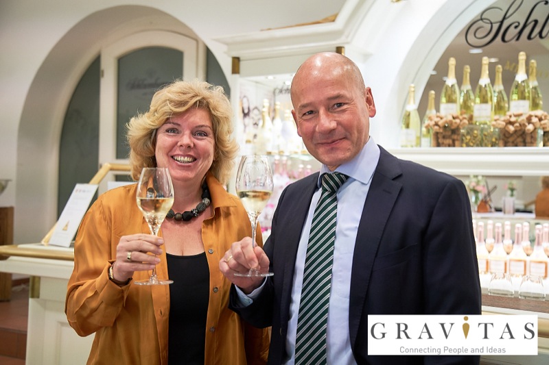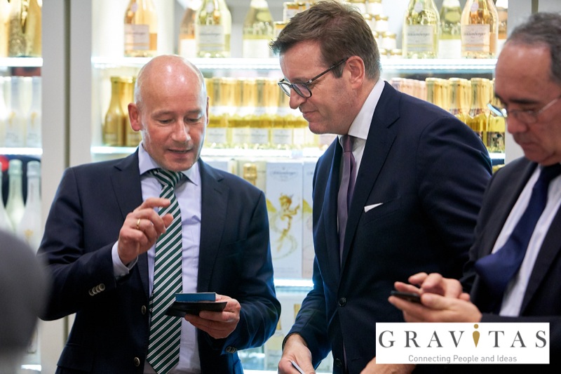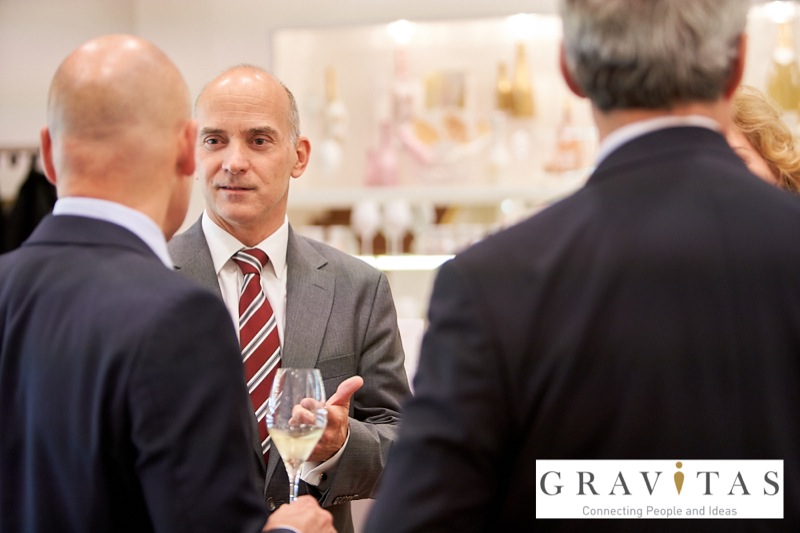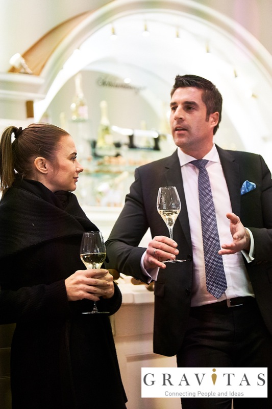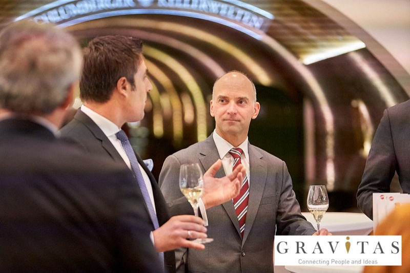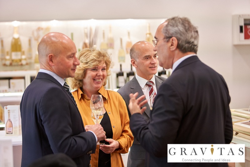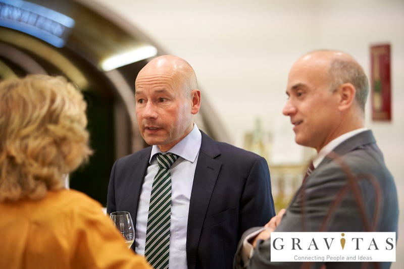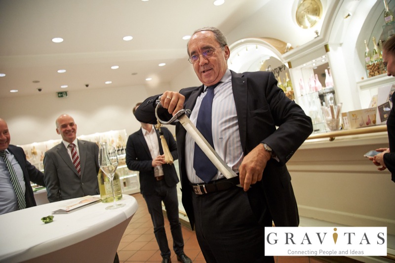 Karoly Pataki, CEO von Gravitas Business Networking Strategy & Consulting GmbH, lud zum Kamingespräch mit Arno Lippert, Vorstandsvorsitzender der Schlumberger AG, in die Schlumberger Kellerwelten. Die interessierten Gäste konnten nicht nur mehr über die Marke Schlumberger erfahren sondern auch deren Produkte verkosten.