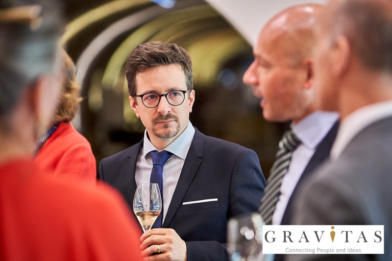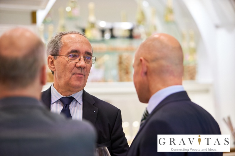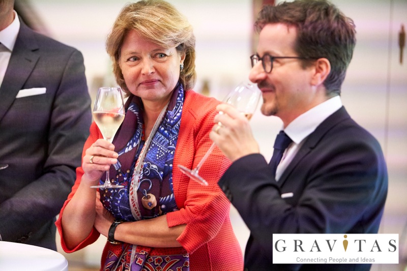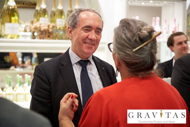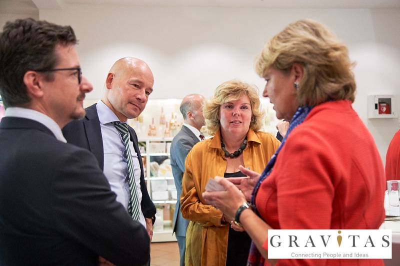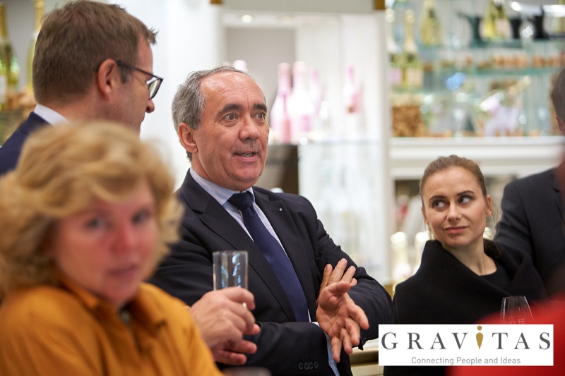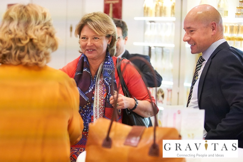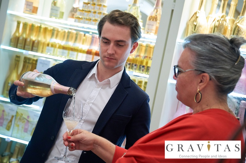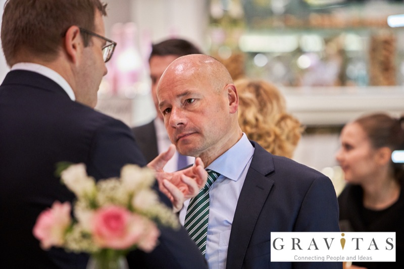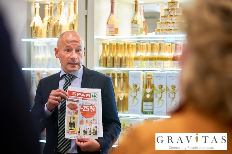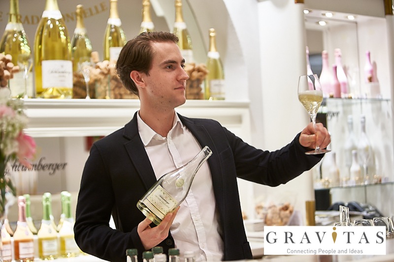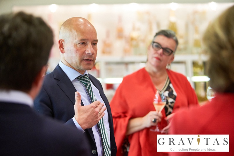 Karoly Pataki, CEO von Gravitas Business Networking Strategy & Consulting GmbH, lud zum Kamingespräch mit Arno Lippert, Vorstandsvorsitzender der Schlumberger AG, in die Schlumberger Kellerwelten. Die interessierten Gäste konnten nicht nur mehr über die Marke Schlumberger erfahren sondern auch deren Produkte verkosten.