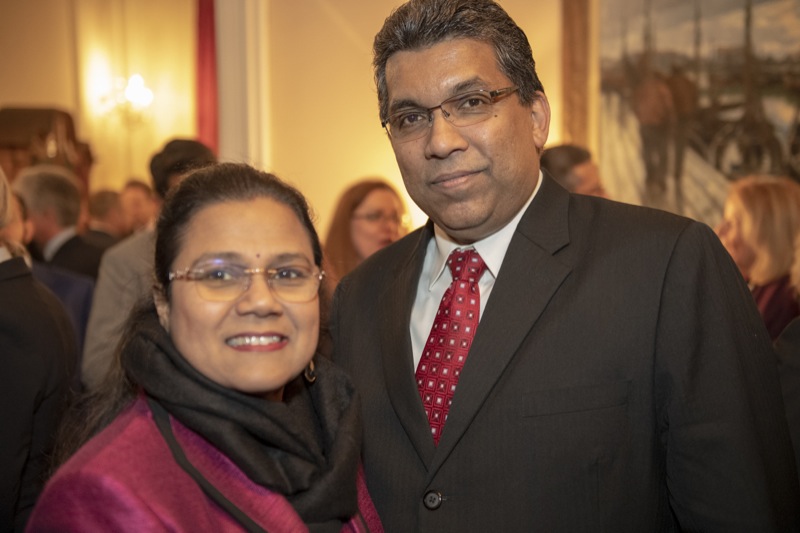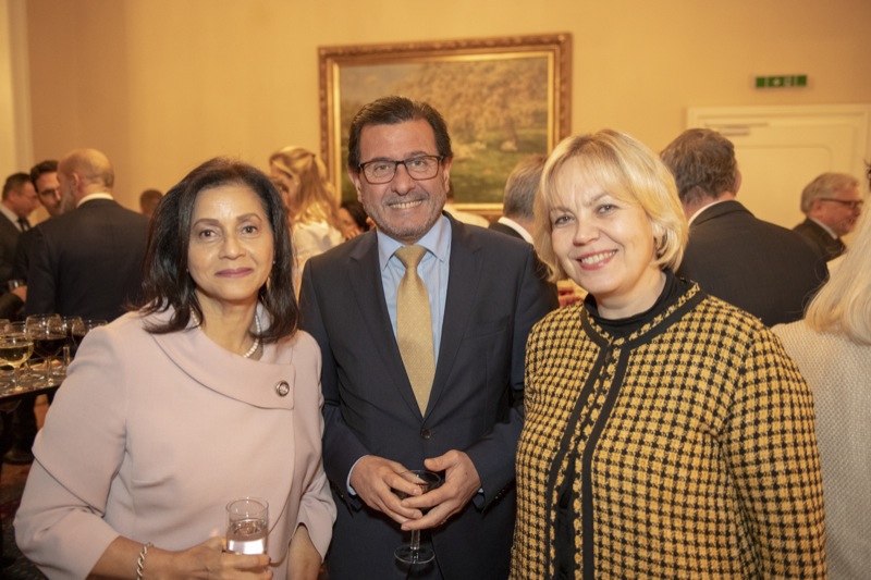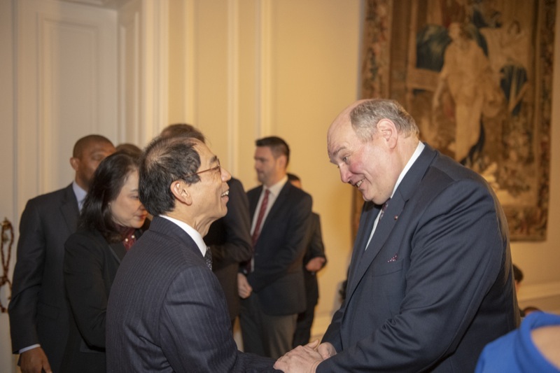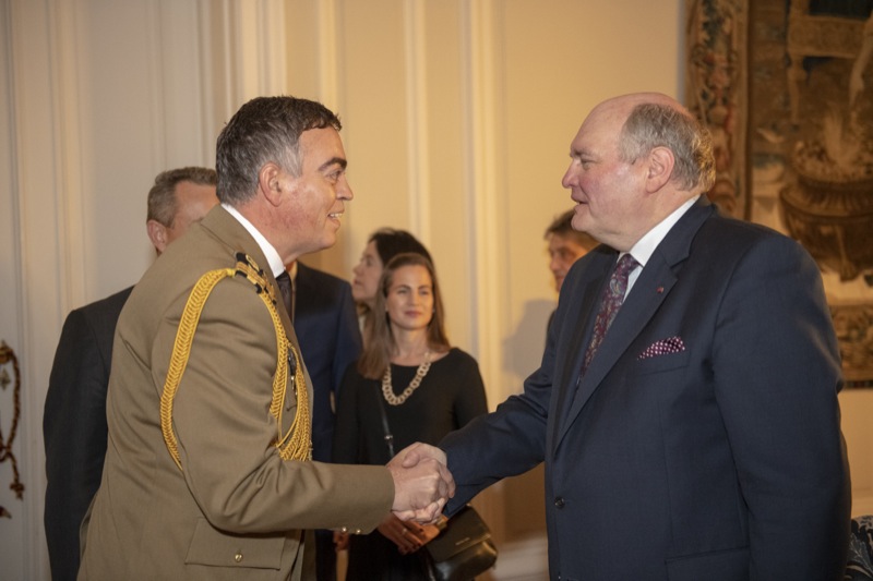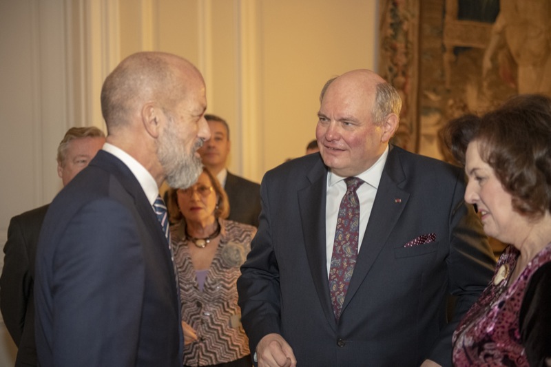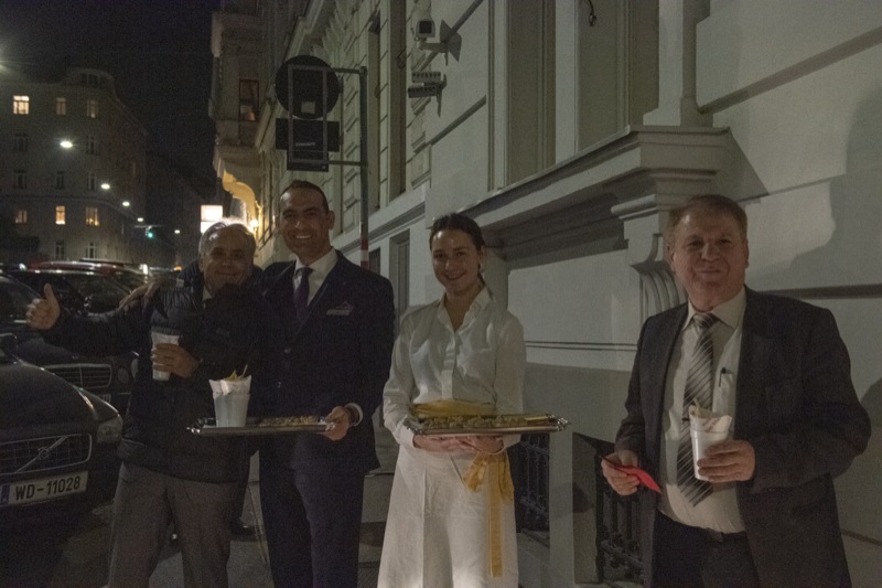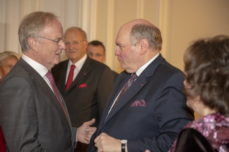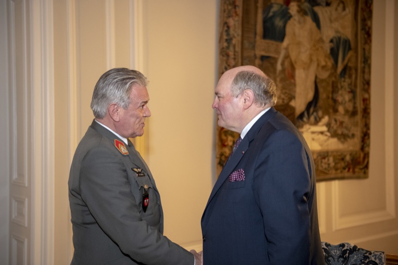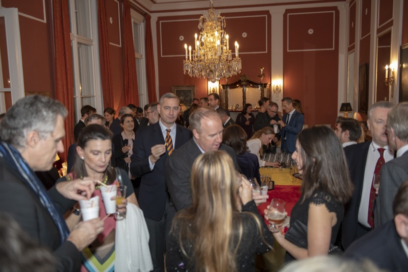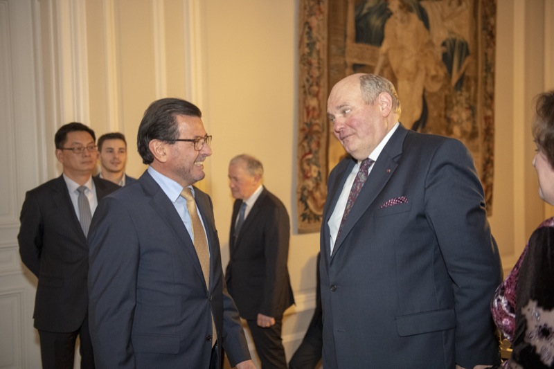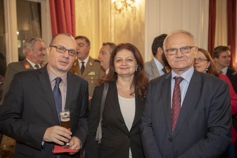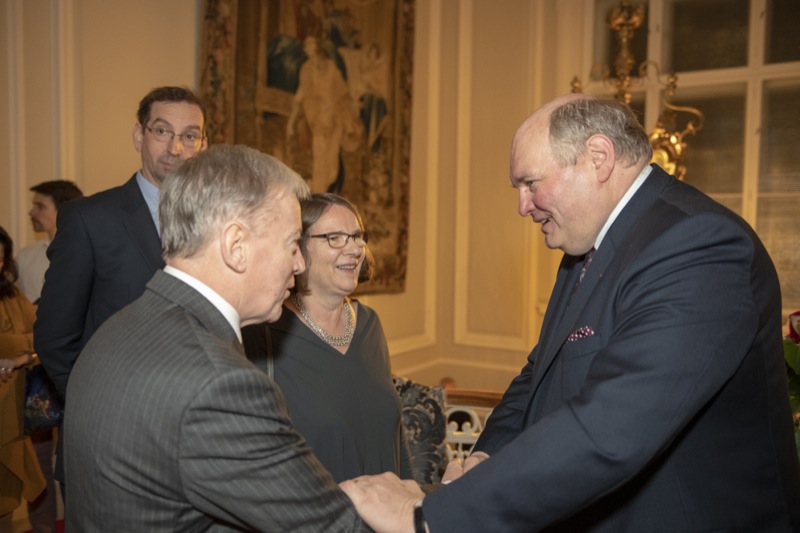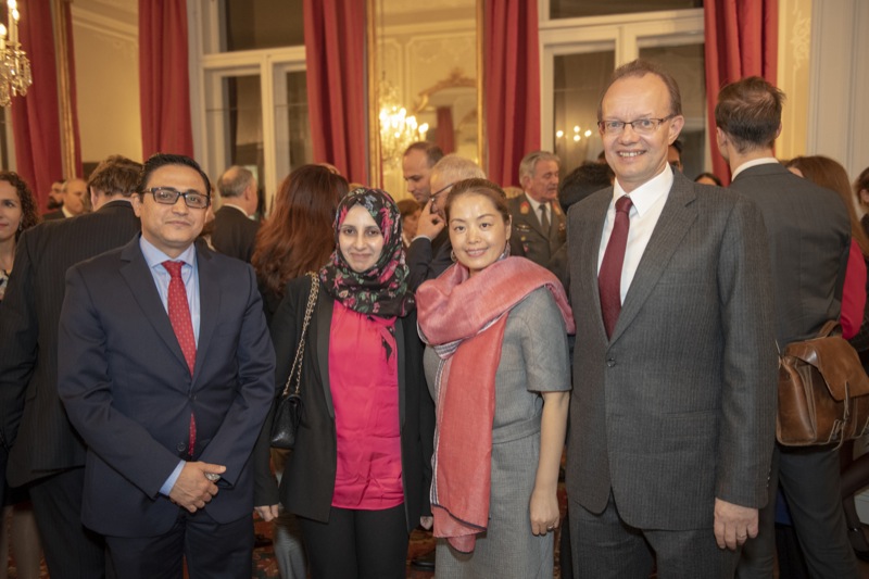 bei den Internationalen Organisationen in Wien und Frau Ghislain D'hoop, zusammen mit dem Ständigen Vertreter des Königreichs Belgien bei der OSZE, S.E. Botschafter Paul Huynen und Frau Dr. Med. Christine Huynen-Van der Borght, zu einem Empfang in die Residenz.