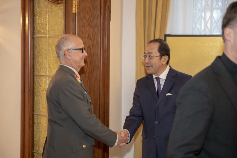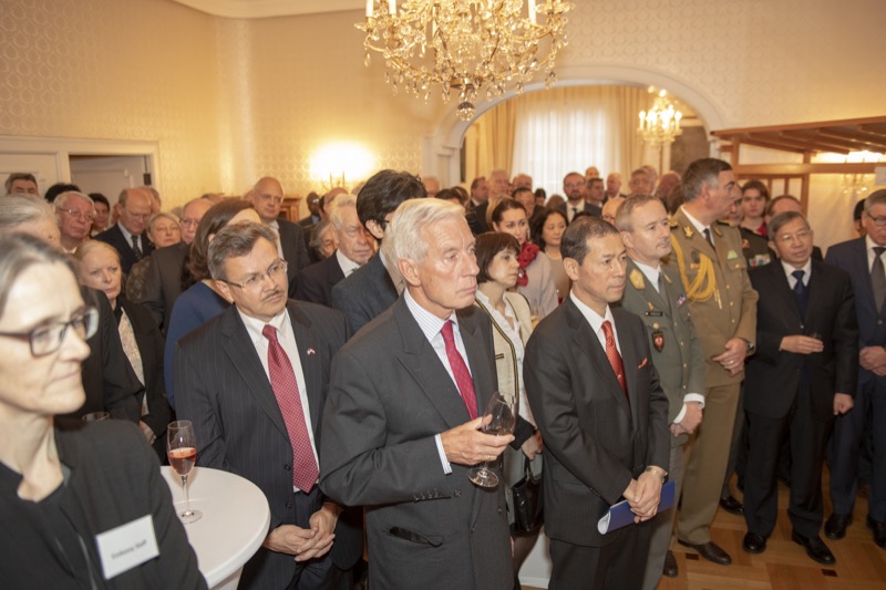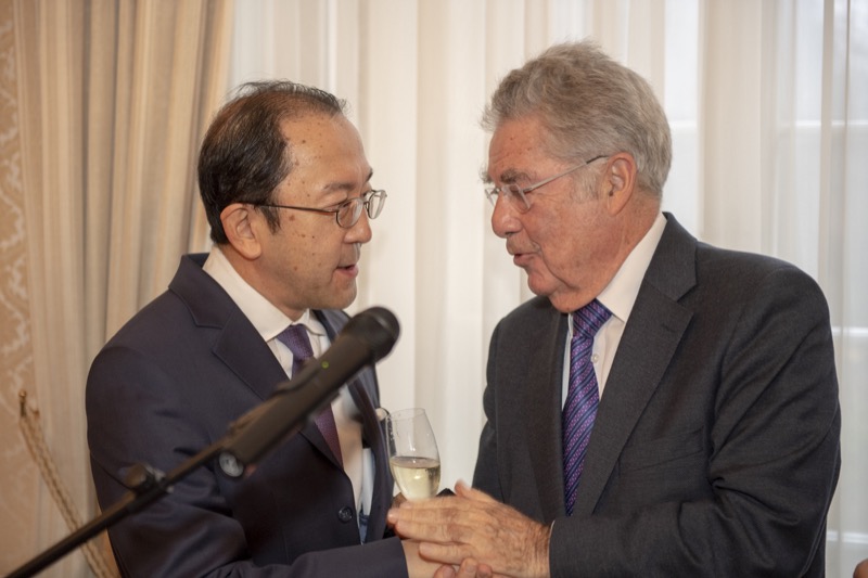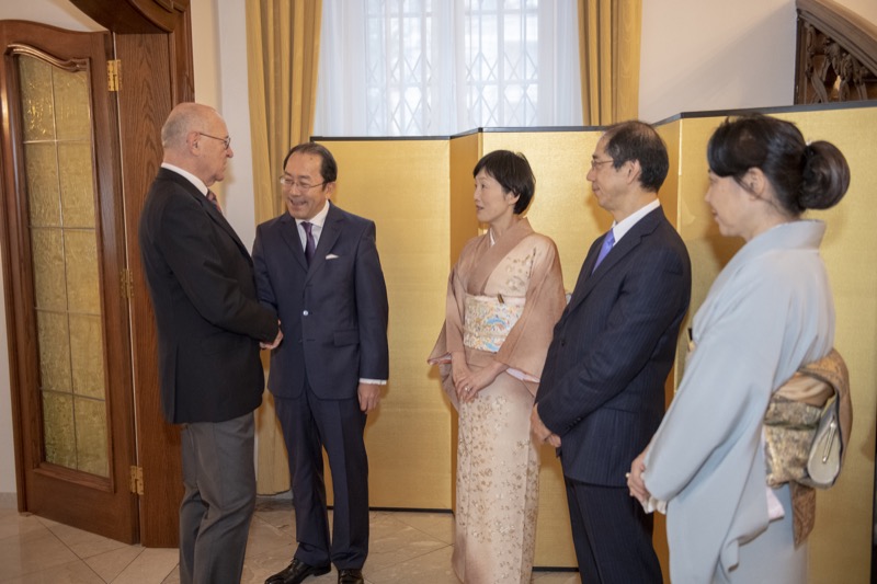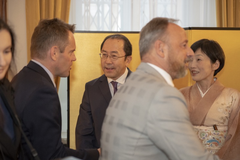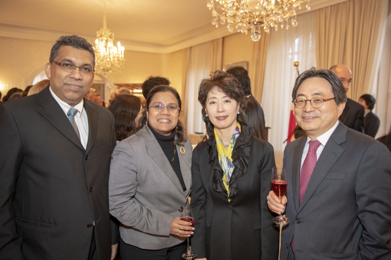 Aus Anlass des Geburtstages Seiner Majestät des Kaisers Akihito luden S.E. Kiyoshi Koinuma, Botschafter von Japan, und Frau Meiko Koinuma sowie der Ständige Vertreter Japans bei den internationalen Organisationen, S.E. Mitsuru Kitano und Frau Yoshie Kitano, zu einem Empfang in die Residenz.