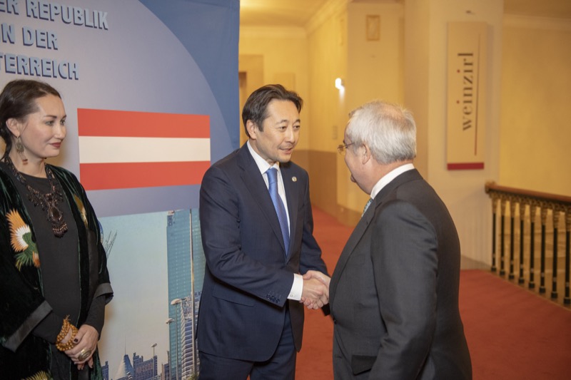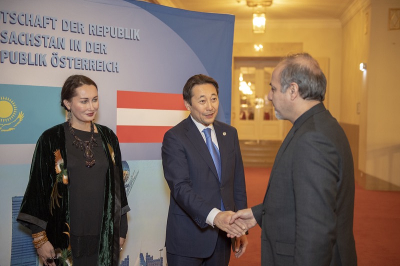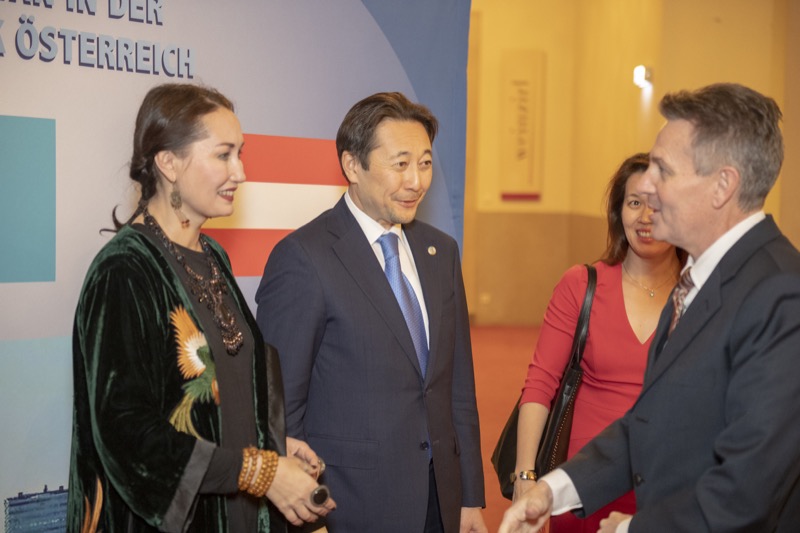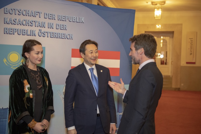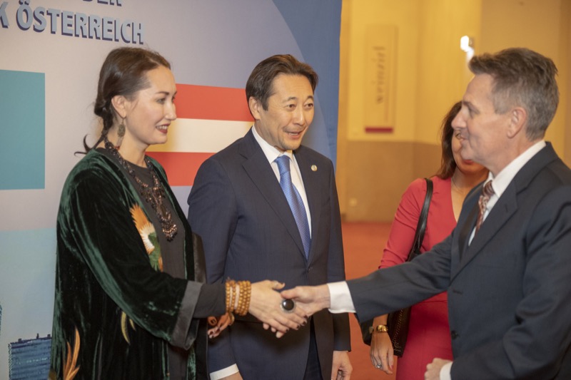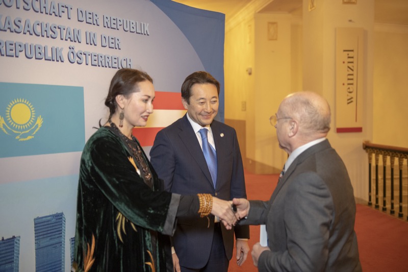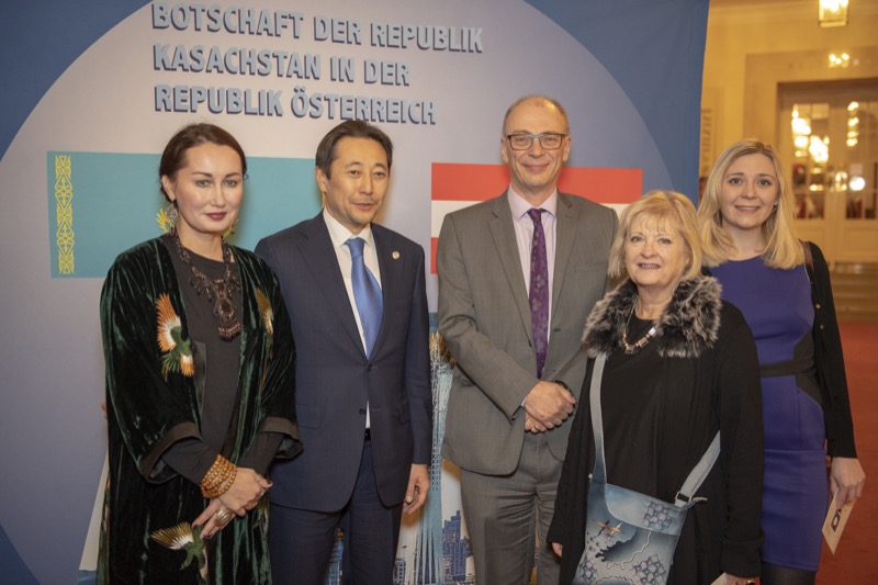 Im Rahmen der Konzertreihe "Kasachische Perlen - Klang der Grossen Steppe" und anlässlich des 27. Unabhängigkeitstages der Republik Kasachstan luden S.E. Kairat Sarybay, Botschafter von Kasachstan in Österreich, und Frau Leila Makhat-Sarybay zu einem Galakonzert mit Künstlern aus Kasachstan und anschliessendem Empfang in das Wiener Konzerthaus.