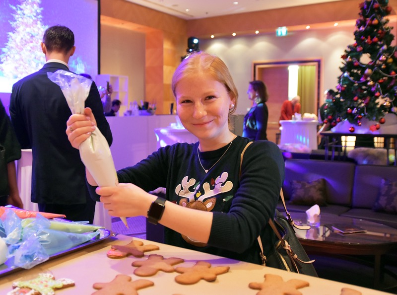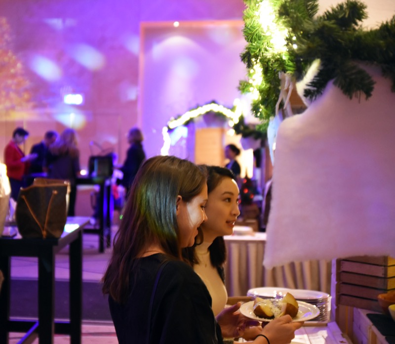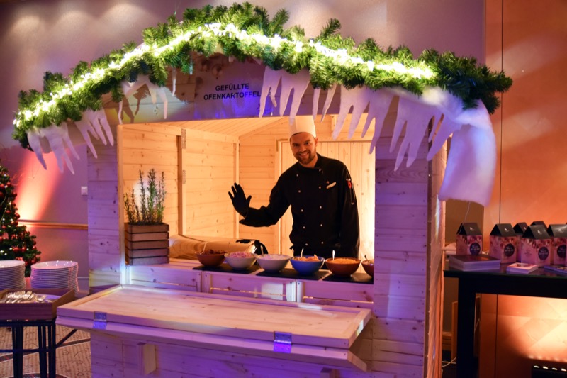 Eigens für das vorweihnachtliche Event wurde der Festsaal des Top-Hotels am Wiener Stadtpark in einen Indoor-Christkindlmarkt verwandelt, mit eigenen Food-Ständen und einer Bar, wo man sich mit herrlich weihnachtlichen Cocktails und Smoothies – angesichts der Tageszeit vorwiegend alkoholfrei – wärmen konnte.