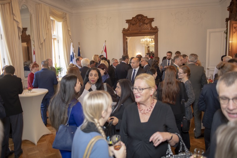 Aus Anlass des Unabhängigkeitstages und der Verabschiedung luden der Botschafter und Ständiger Vertreter Finnlands bei den Internationalen Organisationen in Wien, S.E. Hannu Kyröläinen, mit seiner Gattin Frau Arja Kyröläinen zu einem Empfang in die Residenz.