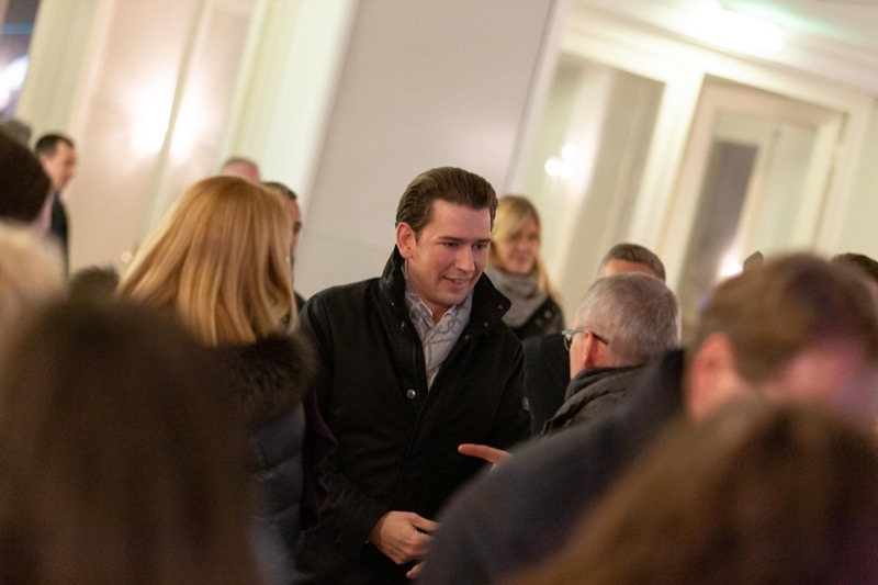 ÖVP-Chef Sebastian Kurz lud erstmals in seiner Funktion als Kanzler zu seinem mittlerweile traditionellen Empfang bei Punsch & Maroni in den Kursalon Hübner. Der Einladung folgten rund 1400 Gäste, darunter zahlreiche Prominente aus Politik, Wirtschaft, Kultur und den Medien.