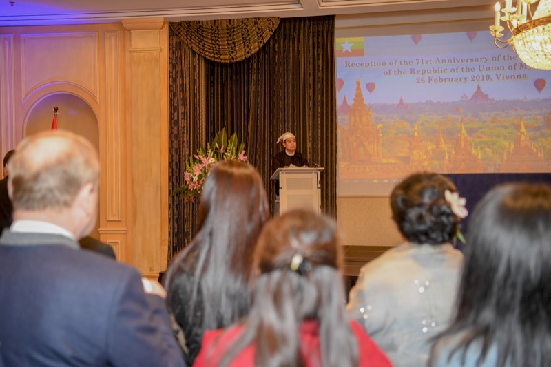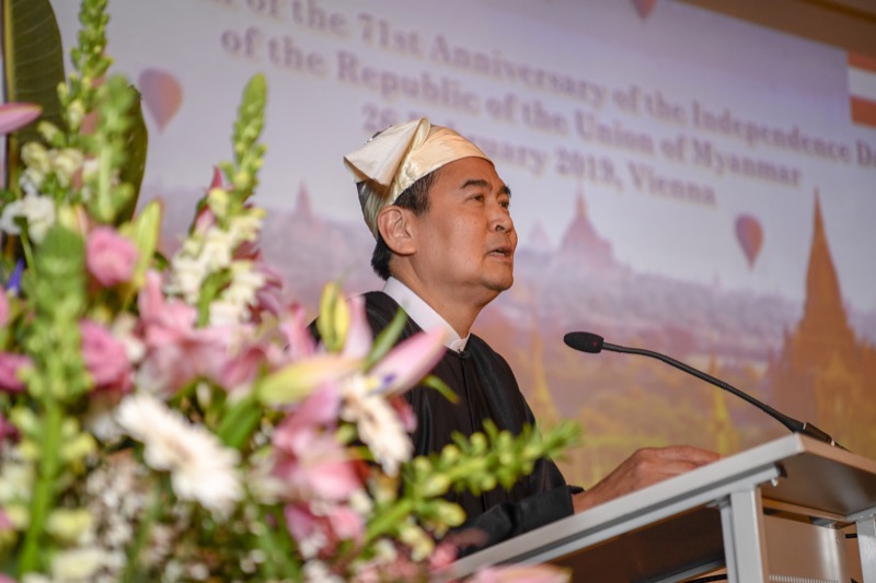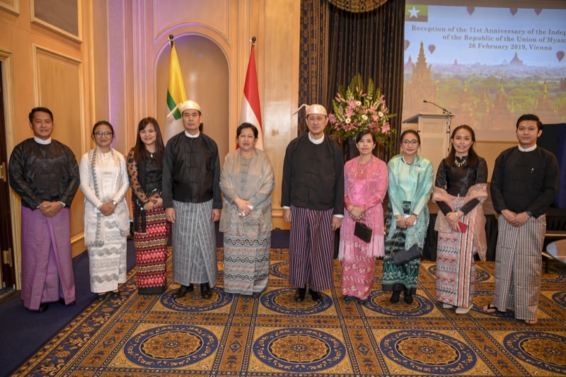 S.E. San Lwin, Botschafter von Myanmar in Österreich und ständiger Vertreter bei den Internationalen Organisationen, und Frau ChitChit Nyi luden anlässlich des 71. Jahrestages der Unabhängigkeit zu einem Empfang.