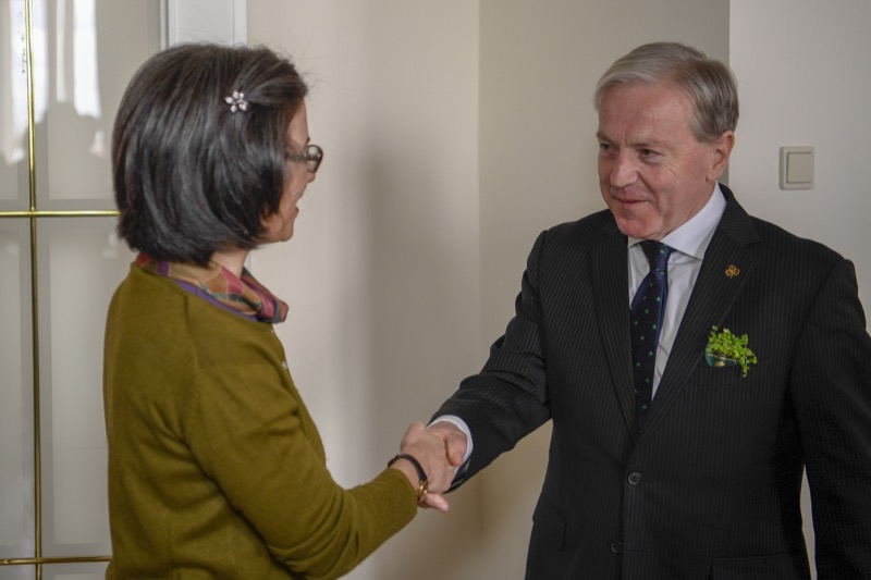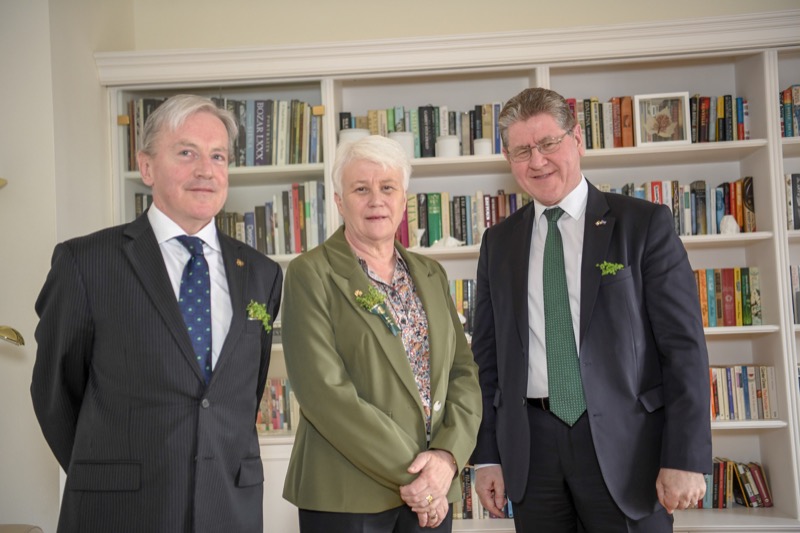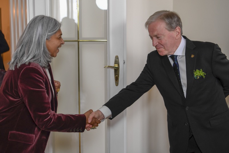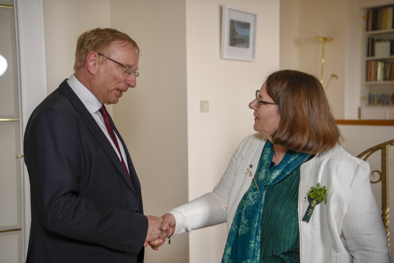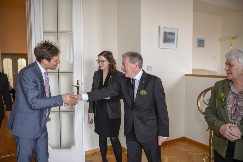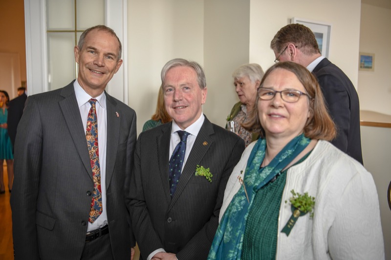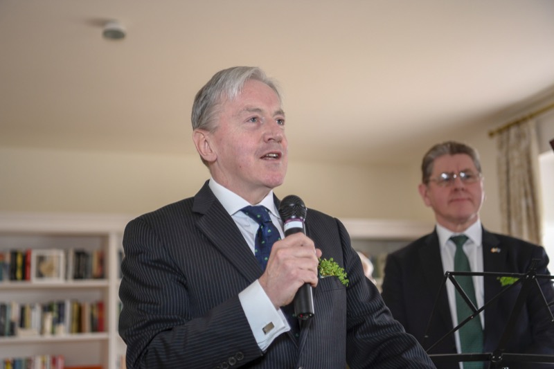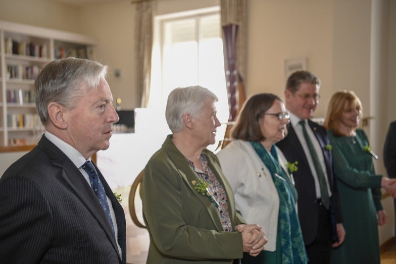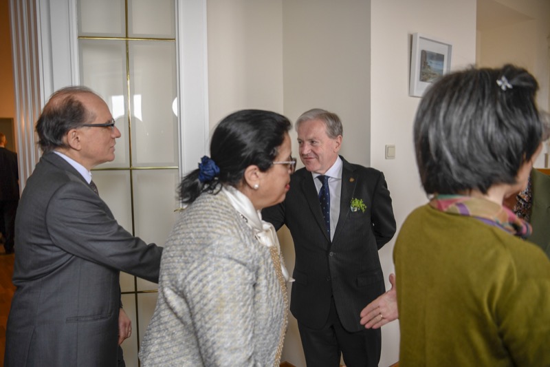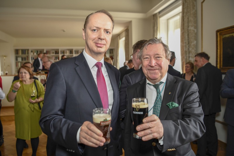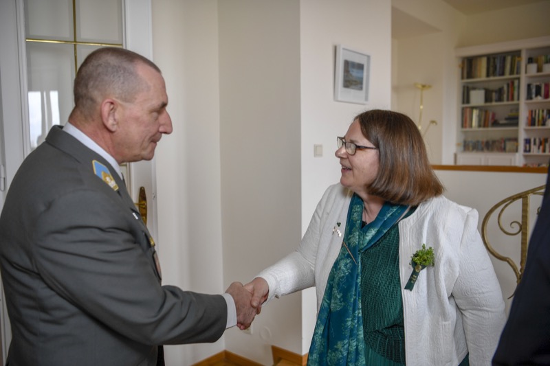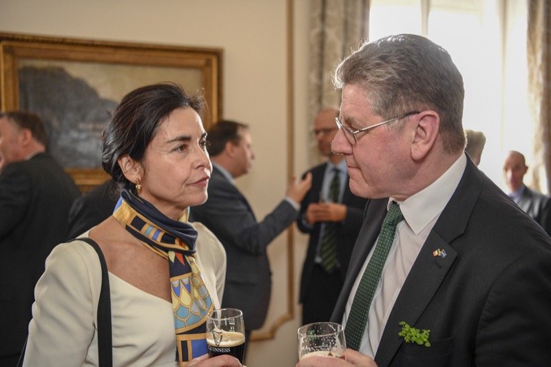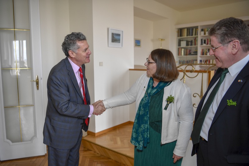Anlässlich des St. Patrick's Day, dem irischen Nationalfeiertag, luden S.E. Tom Hanney, Botschafter von Irland, und Frau Paula Fitzmaurice Hanney sowie S.E. Kevin Dowling, Botschafter bei der OSZE, und Frau Una Langan zu einem Empfang in die Residenz. Ehrengast war Gesundheitsministerin Catherine Byrne.