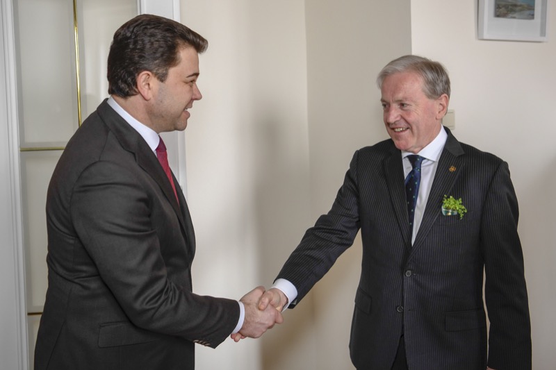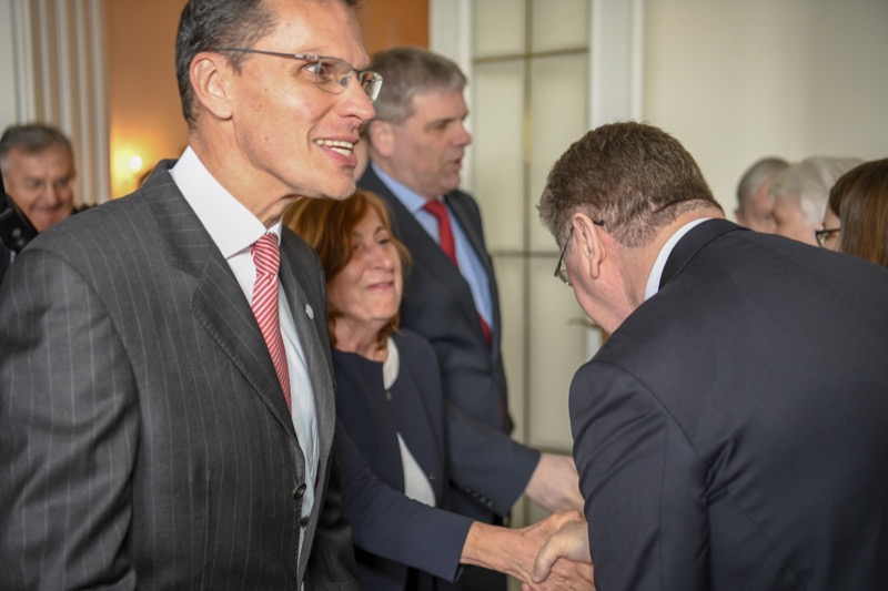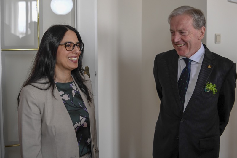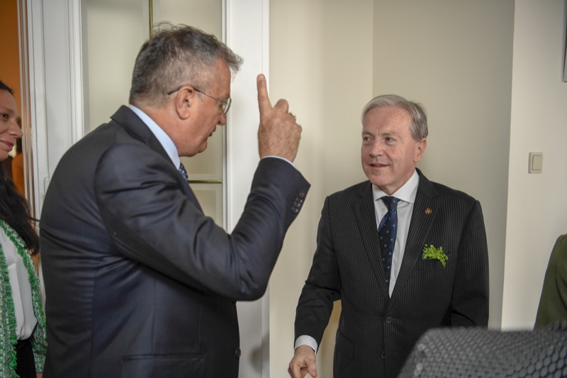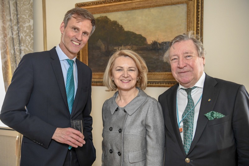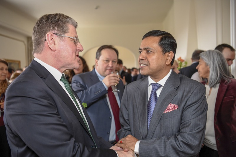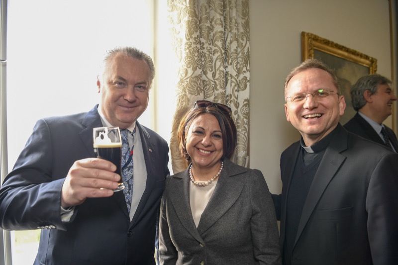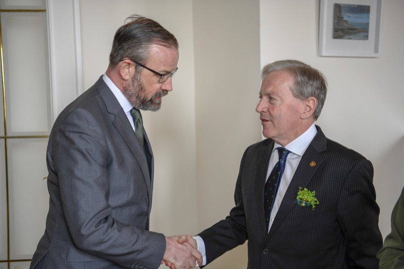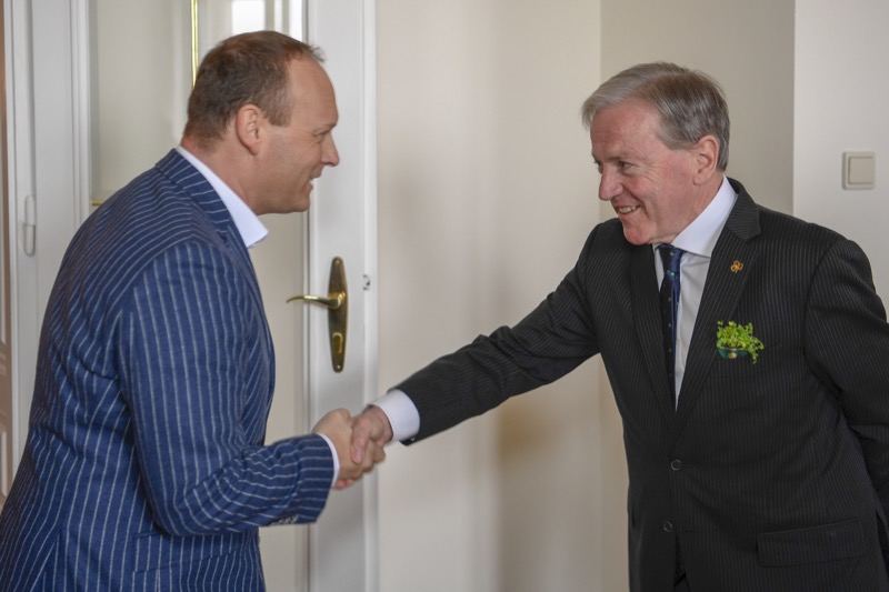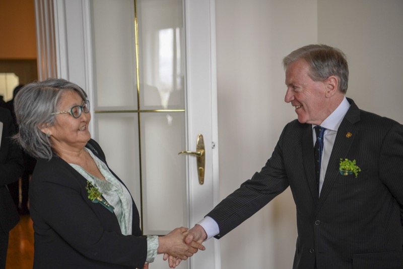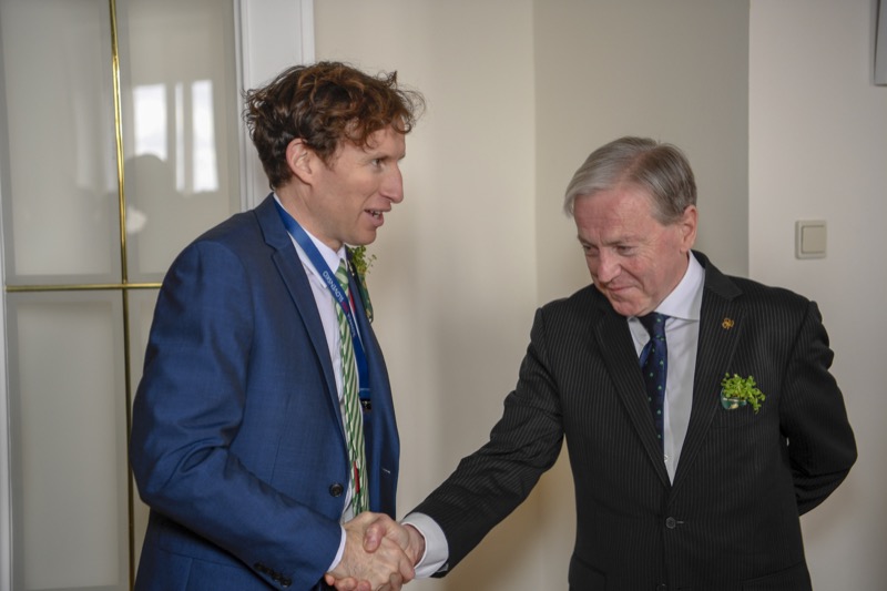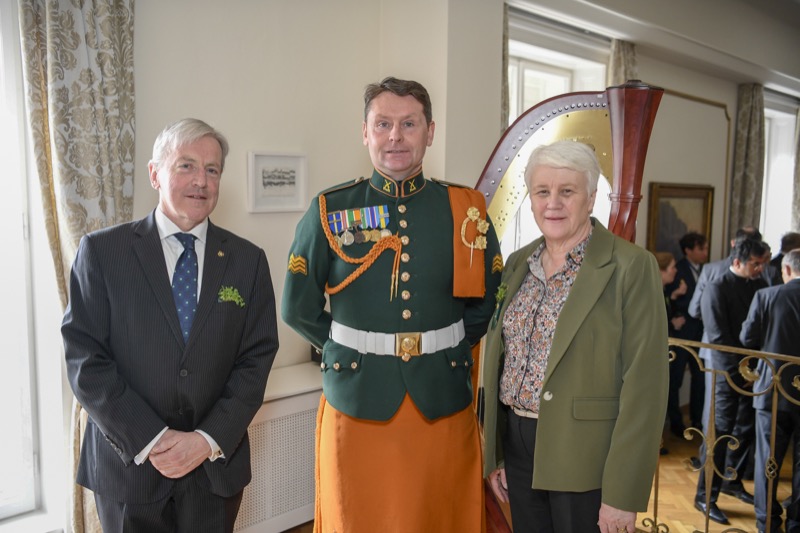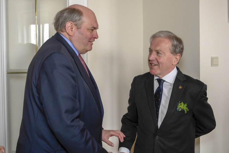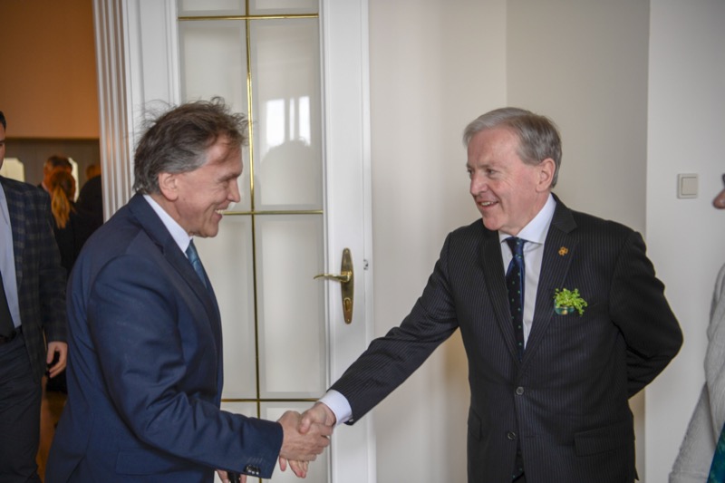 Anlässlich des St. Patrick's Day, dem irischen Nationalfeiertag, luden S.E. Tom Hanney, Botschafter von Irland, und Frau Paula Fitzmaurice Hanney sowie S.E. Kevin Dowling, Botschafter bei der OSZE, und Frau Una Langan zu einem Empfang in die Residenz. Ehrengast war Gesundheitsministerin Catherine Byrne.