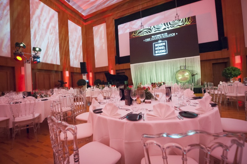 Das geschichtsträchtige und denkmalgeschützte Rosenhügelstudio wird ab sofort neben Musikaufnahmen für Hollywoodblockbuster auch Schauplatz rauschender Partys und gelungener Firmenevents. Auf insgesamt 540 Quadratmetern können Veranstaltungen von großen Firmenfeiern und Produktlaunches über Pressekonferenzen und TV-Talks bis hin zu Fotoshootings, Modeschauen oder Hochzeiten für bis zu 500 Personen realisiert werden. Dank der speziellen Konstruktion und Verschalung des Saales dringen keine Geräusche oder Erschütterungen nach innen oder nach aussen. Den Exklusivertrag für die Vermarktung und Vermietung des Rosenhügelstudios als einzigartige Eventlocation sichert sich die Eventexpertin Katharina Perry.