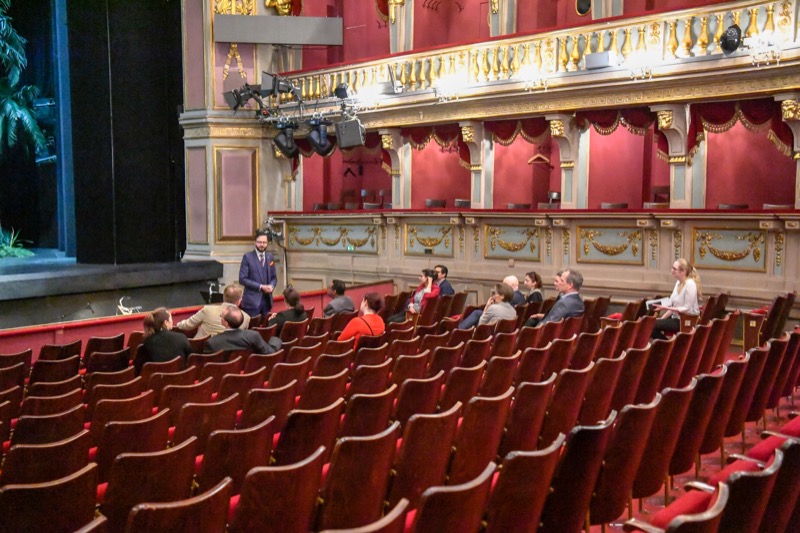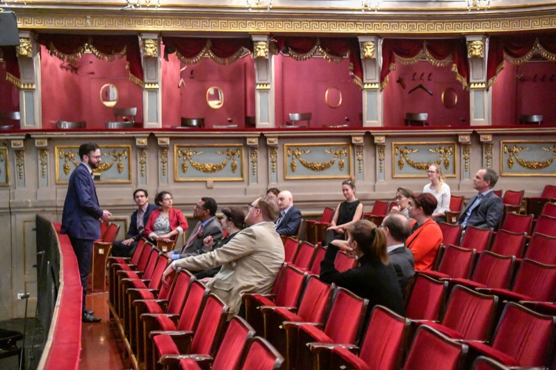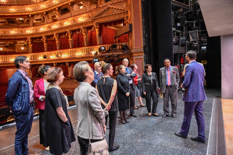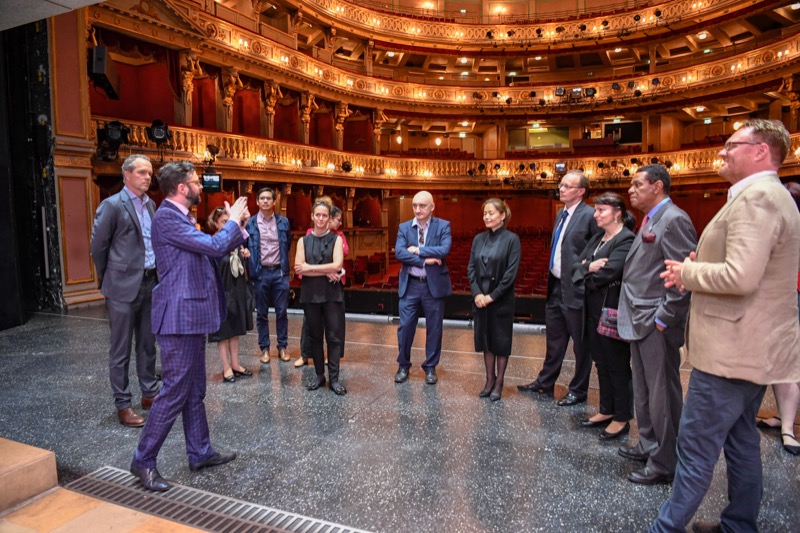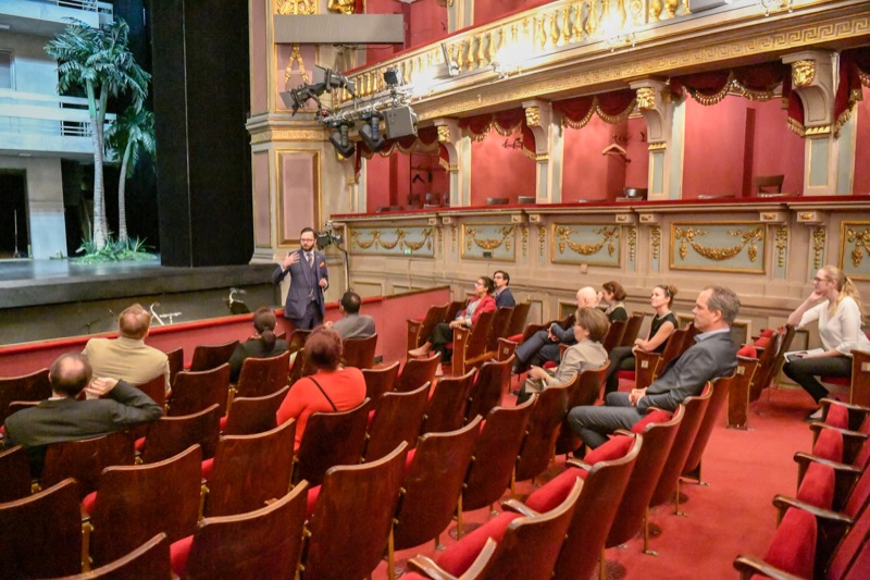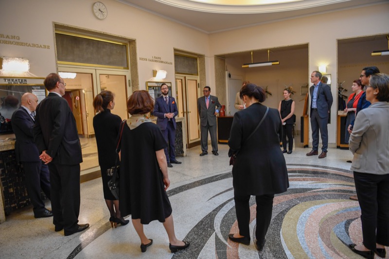 CERCLE DIPLOMATIQUE lud gemeinsam mit Intendant Roland Geyer eine kleine Gruppe von Botschaftern zu einer exklusiven Backstage-Führung in das Theater an der Wien - Das Opernhaus. Unsere Gäste erfuhren in einem sehr unterhaltsamen und informativen Vortrag von Mag. Philipp Wagner-Nguyen viel über die Geschichte des Hauses sowie das aktuelle Programm und konnten dann nicht nur auf und hinter die Bühne, wo schon das Bühnenbild für die Abendvorstellung von ORLANDO aufgebaut war, sondern auch in den Garderoben- und Make-up Bereich.