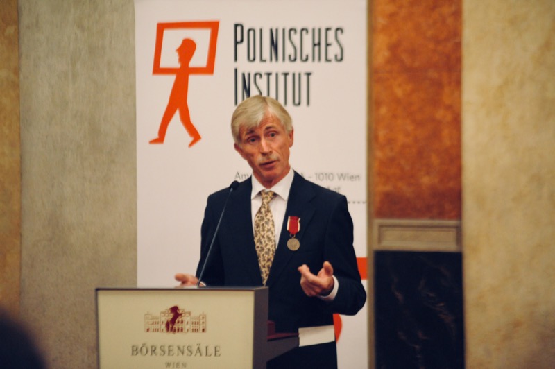 Während der Gala überreichte Direktor Rafał Sobczak im Namen des Ministers die Ehrenmedaille "Bene Merito" an einen herausragenden Experten für slawische Literatur der Universität Wien und Förderer polnischer Kultur in Österreich, Prof. Alois Woldan.