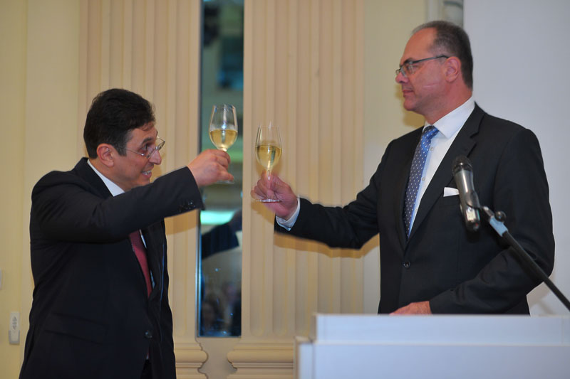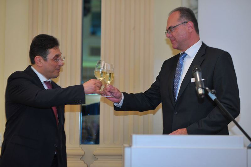 S. E. Galib Israfilov, Botschafter der Republik Aserbaidschan in Österreich, und Frau Farah Aslanova, sowie der Militärattaché, Oberstleutnant Agar Heybatli, luden zu einem Empfang in das Grand Hotel Wien, um den Nationalfeiertag, den 100. Jahrestag des Aserbaidschanischen Diplomatischen Dienstes und den Tag der Streitkräfte gebührend zu feiern.