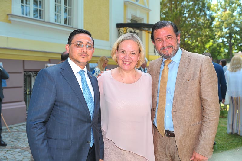 I.E. Alena Kupchyna, Botschafterin der Republik Belarus in Österreich,ständige Vertreterin bei den internationalen Organisationen und Delegationsleiterin bei der OSZE, lud anlässlich des Unabhängigkeitstages zu einem Garten-Empfang in die Botschaft.