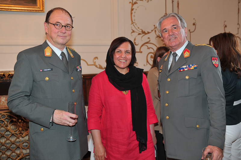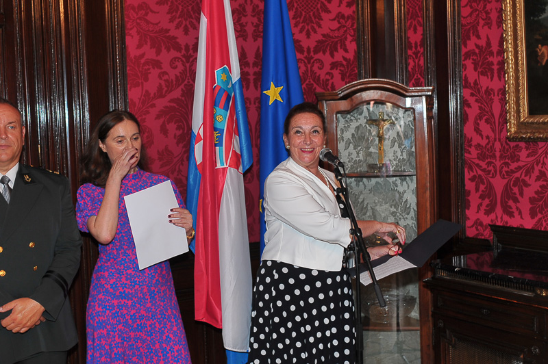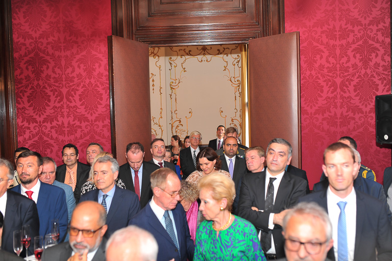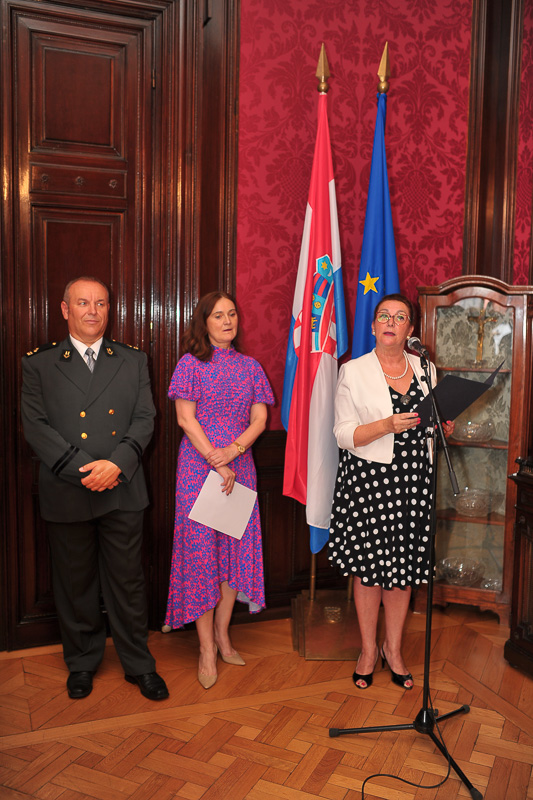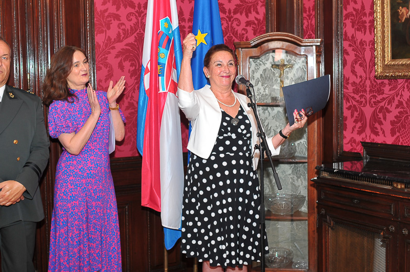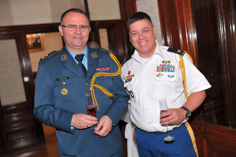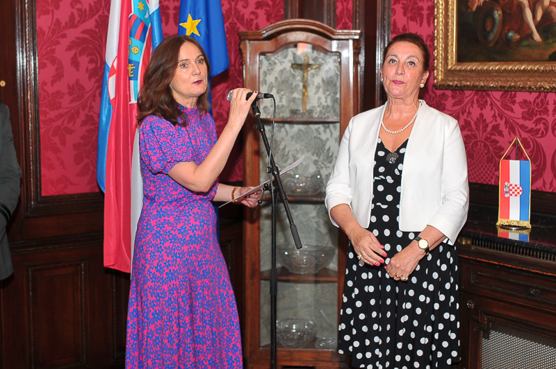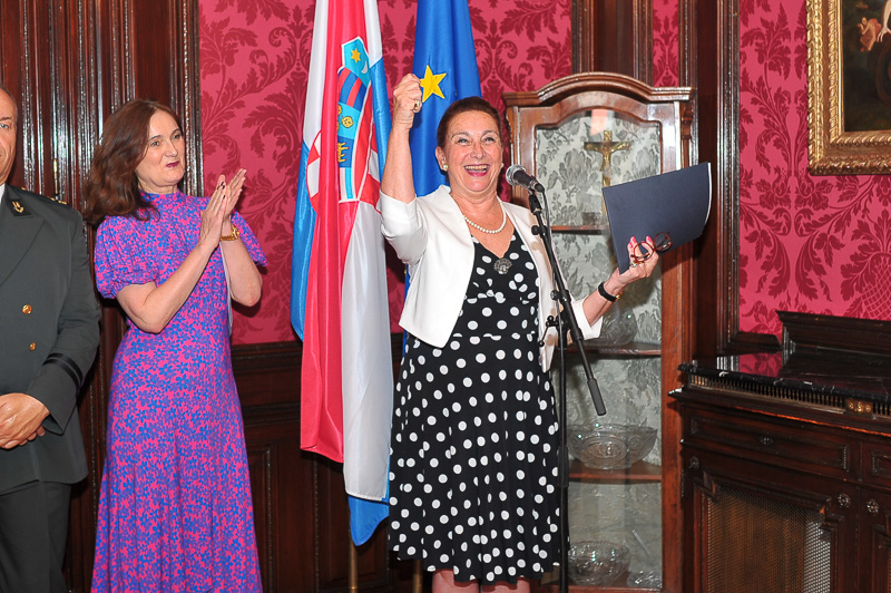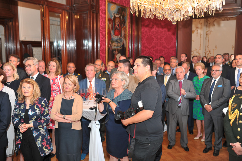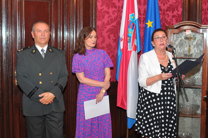 Anlässlich des kroatischen Nationalfeiertages, des Tages der Streitkräfte luden die Botschafterin der Republik Kroatien, I.E. Vesna Cvjetković, die Ständige Vertreterin bei der OSZE, den Vereinten Nationen und internationalen Organisationen in Wien, Dubravka Plejić Marković, und der Verteidigungsattaché Oberst Davor Kopanji, zu einem Empfang in die Botschaft.