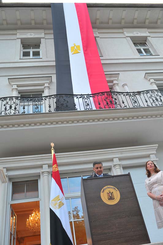 Anlässlich des Nationalfeiertages der arabischen Republik Ägypten luden der Botschafter sowie ständige Vertreter Ägyptens bei den internationalen Organisationen, S.E. Omar Amer Youssef, zu einem Empfang in die Botschaft.