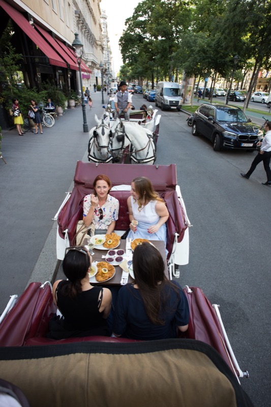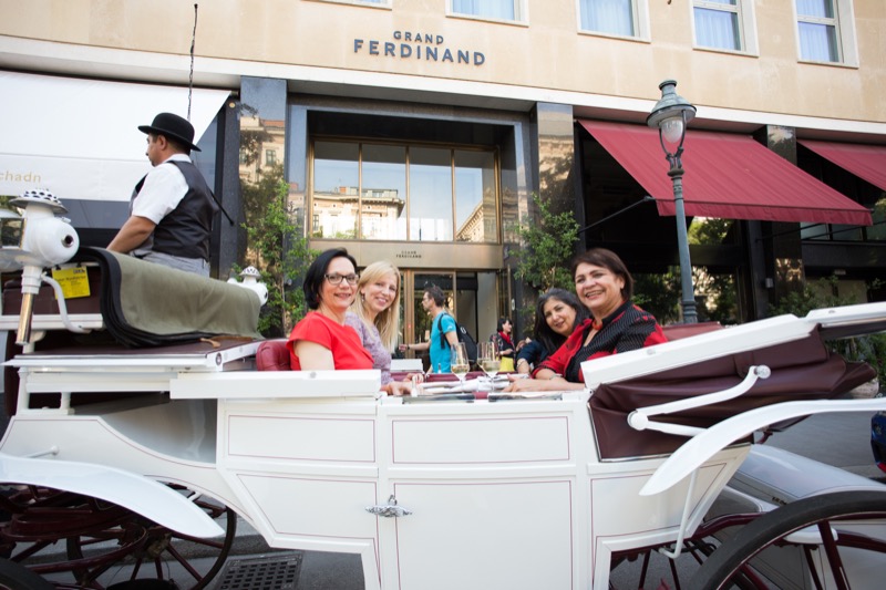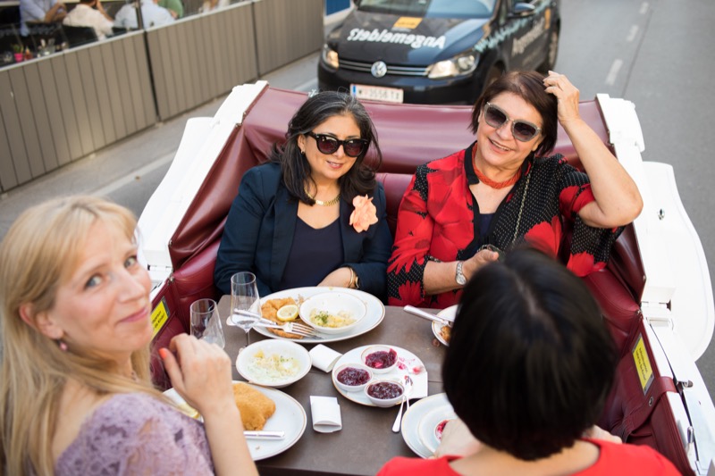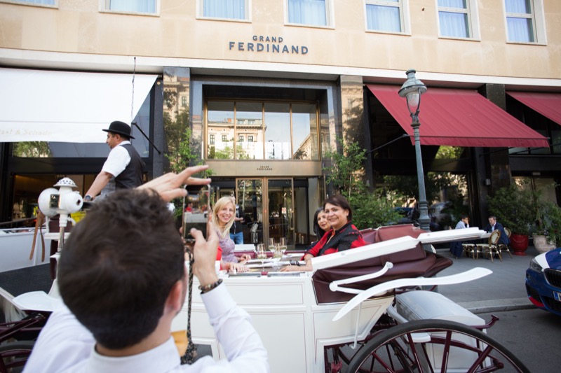 Zu einem ganz besonderen Event mit dem Titel "Charming Riding Dinner" luden Andrea Fürnweger, Herausgeberin von CERCLE DIPLOMATIQUE, gemeinsam mit Angelika Ponecz, Generaldirektorin, sowie Denise Kunisch, Sales & Marketing Direktorin des Grand Ferdinand, die PAs & Protocol Mitarbeiter der Botschaften. Genau 20 Gäste konnten bei prachtvollem Wetter nach einem Aperitif die berühmten Schnitzel aus dem "Meissl & Schadn" geniessen, und zwar während einer Fiakerfahrt durch Wien. Danach fand der gesellige Abend seinen Ausklang bei Drinks in der Grand Étage des Hotels, welche normalerweise nur den Grand Ferdinand Club-Mitgliedern zugänglich ist.