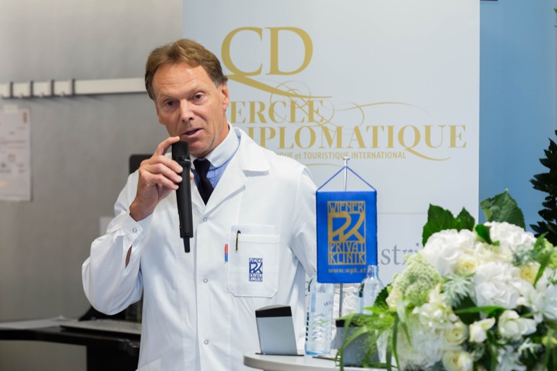Primar Dr. Walter Ebm, Geschäftsführer der Wiener Privatklinik, lud gemeinsam mit Cercle Diplomatique zum traditionellen jährlichen "ambassadors & friends cocktail" in die Räumlichkeiten der Wiener Privatklinik. Nach einleitenden Begrüssungsworten von Primar Dr. Emb und CD-Herausgeber Mag. Alexander Bursky gab es spannende Kurzvorträge von Univ. Prof. Dr. Christoph Zielinski, Leiter des "WPK Academyc Cancer Centers" und Univ. Prof. Dr. Gobert von Skrbensky sowie Dankesworte für die gute Zusammenarbeit und Unterstützung der Österreichischen Krebshilfe durch deren Präsidenten Univ. Prof. Dr. Paul Sevelda. Im Anschluss konnten sich die Gäste bei einem guten Glas Wien und Essen über die verschiedenen Abteilungen des Hauses informieren und erhielten auch in persönlichen Gesprächen mit den anwesenden Ärzten einen guten Eindruck des hervorragenden medizinischen Know-Hows.