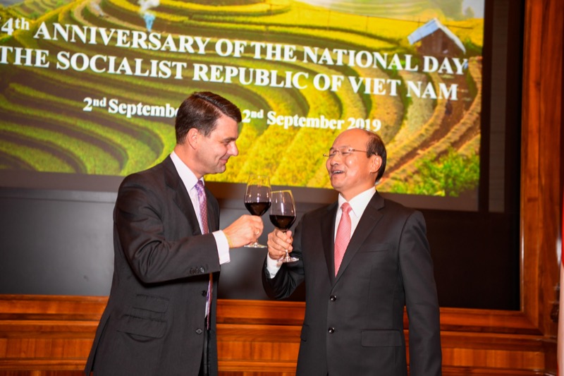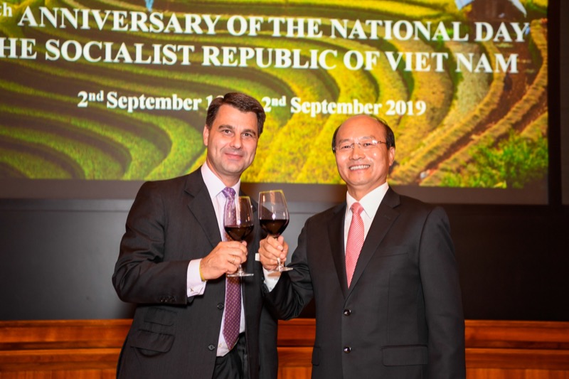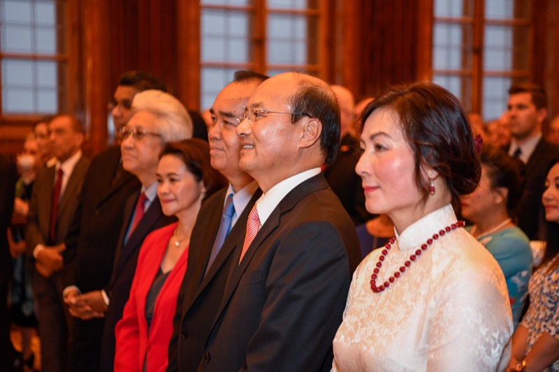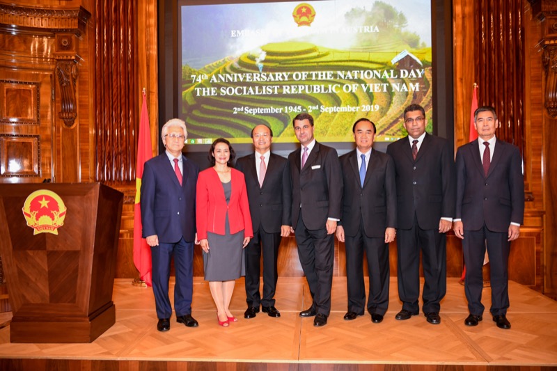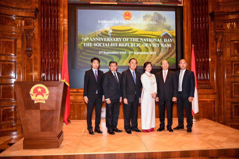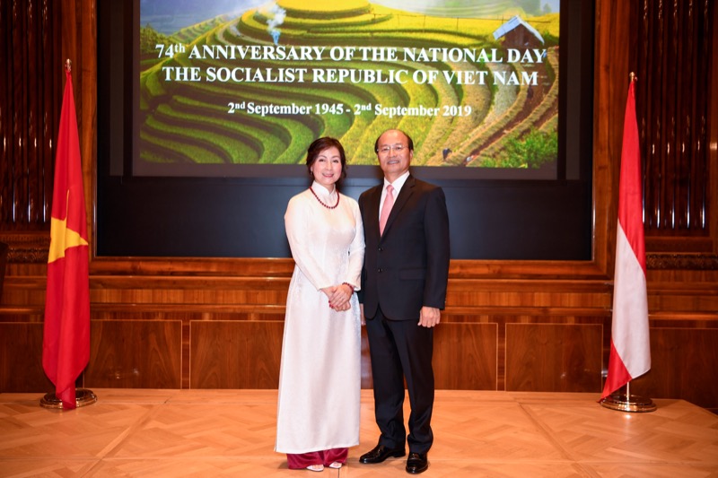 Der Botschafter der sozialistischen Republik Vietnam, S.E. LE Dzung, und Frau NGUYEN Thi Kim Thuy, luden anlässlich des Nationalfeiertages zu einem Empfang in den Grand Salon des Park Hyatt Vienna.