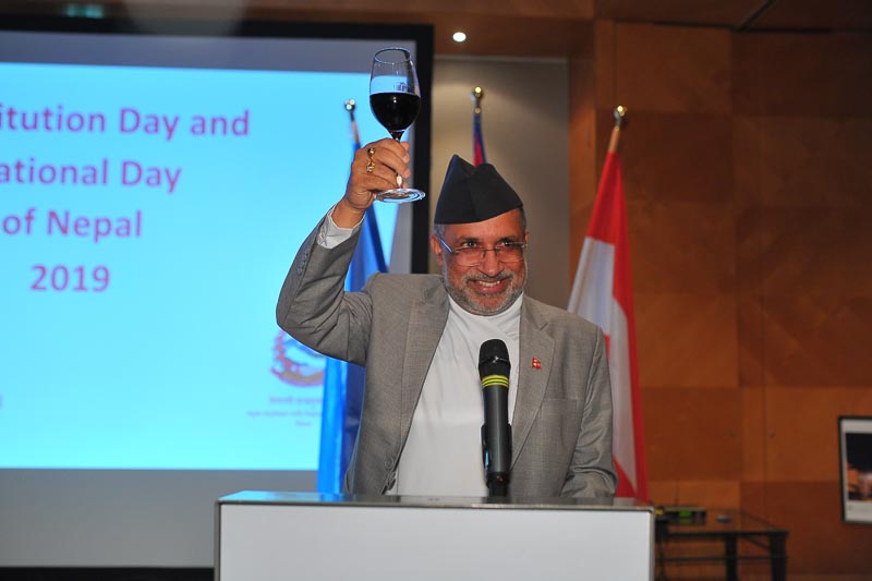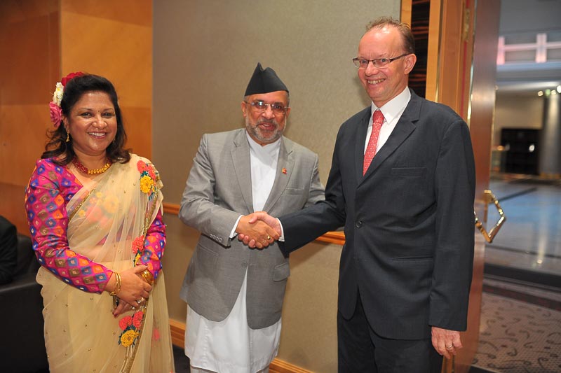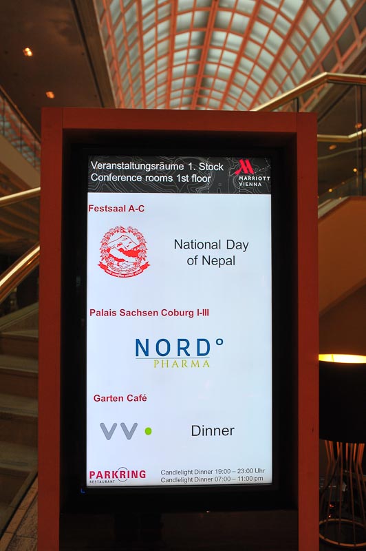 Anlässlich des Nationalfeiertages lud S.E. Prakash Kumar Suvedi, Botschafter und ständiger Vertreter Nepals in Wien, und Frau Susan Suvedi zu einem Empfang in das Hotel Marriott.