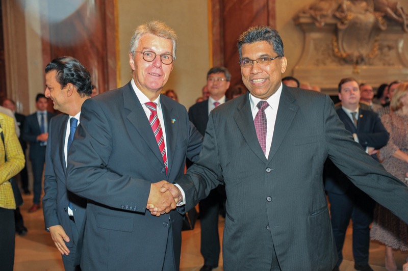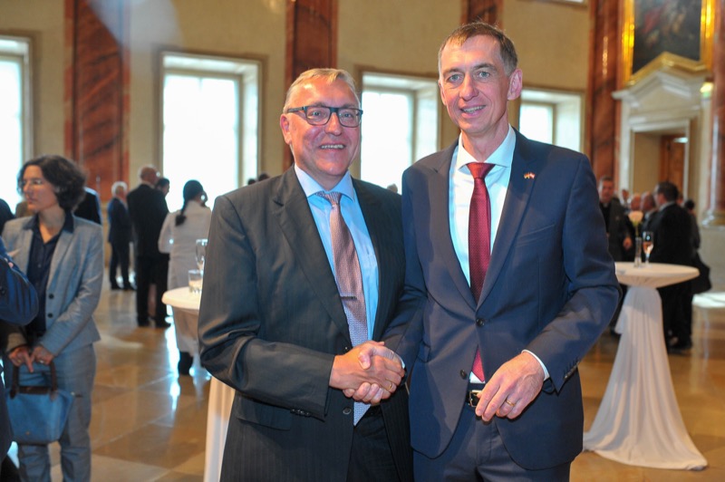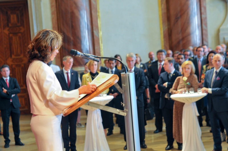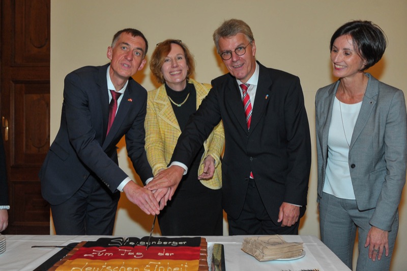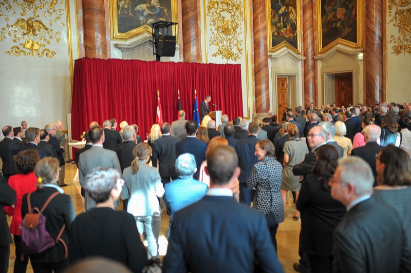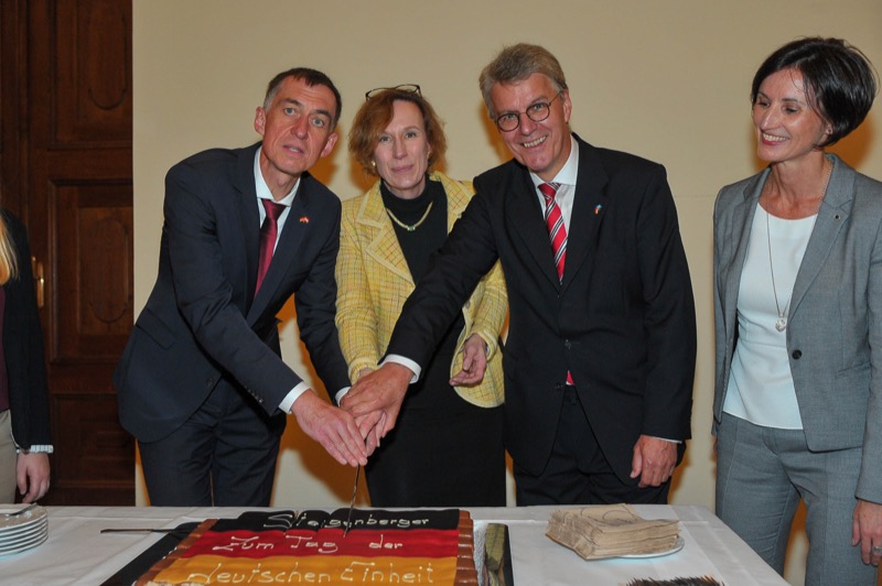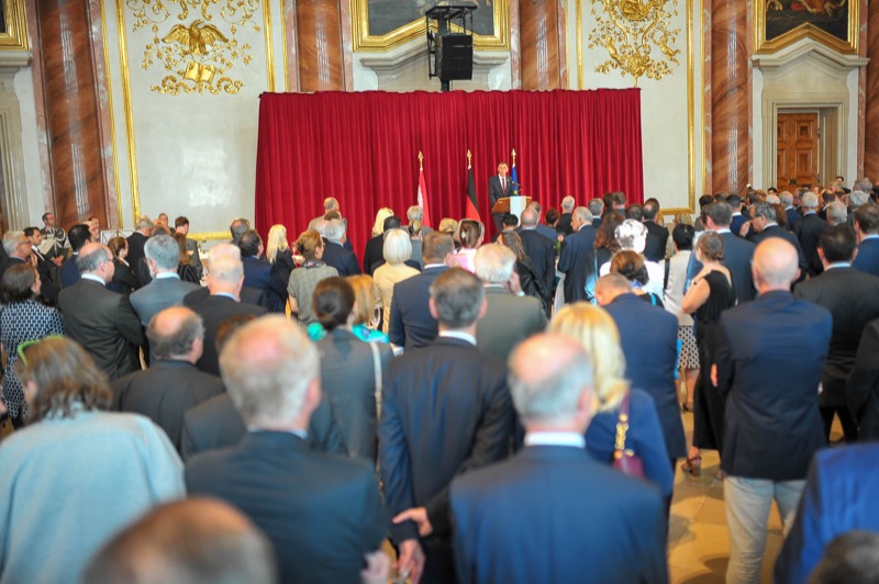 Anlässlich des Tages der Deutschen Einheit luden der Botschafter der Bundesrepublik Deutschland, S.E. Ralf Beste, der Ständige Vertreter bei den Internationalen Organisationen, Gerhard Küntzle und die Ständige Vertreterin bei der OSZE, Gesa Bräutigam, zu einem Empfang in das Gartenpalais Liechtenstein.