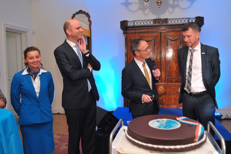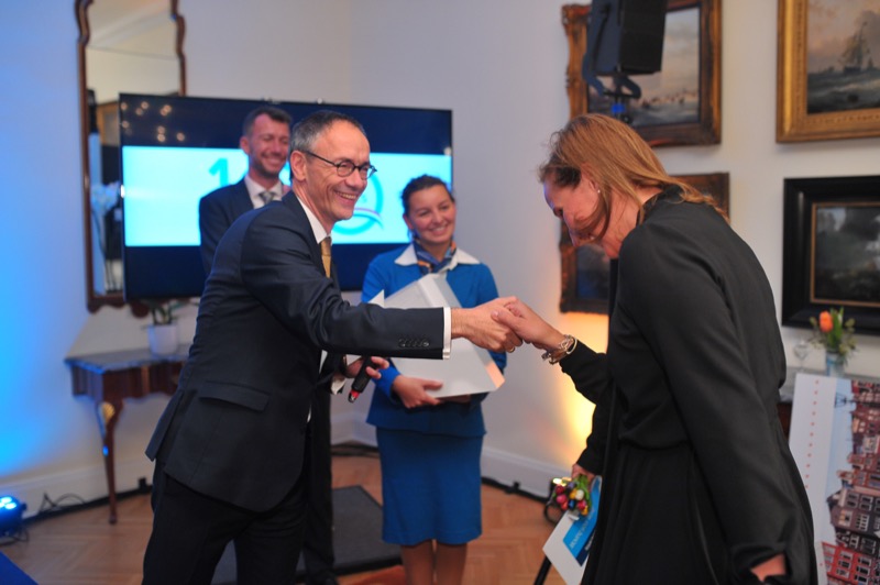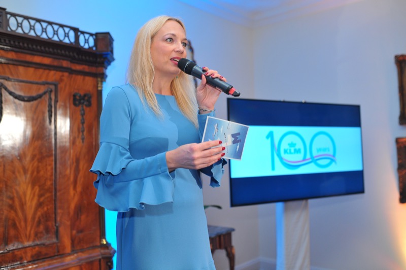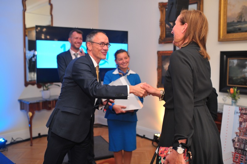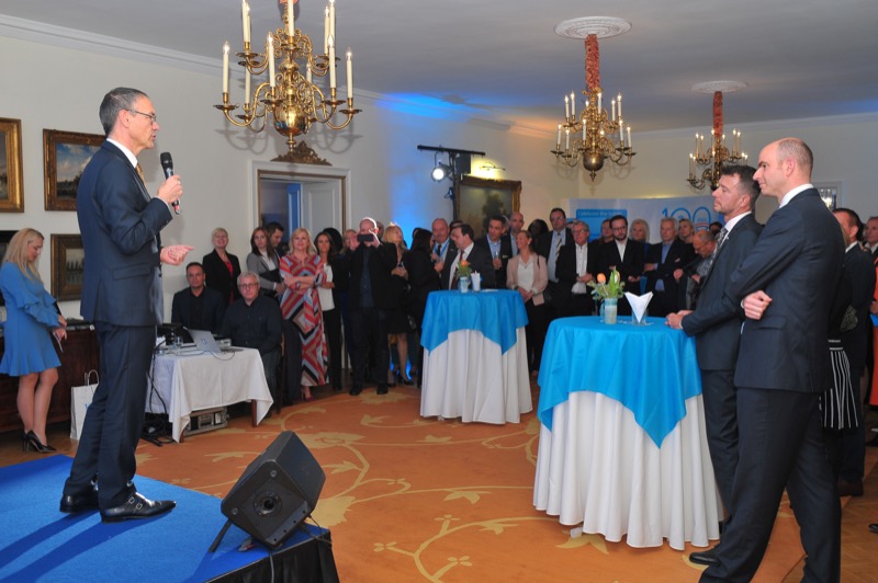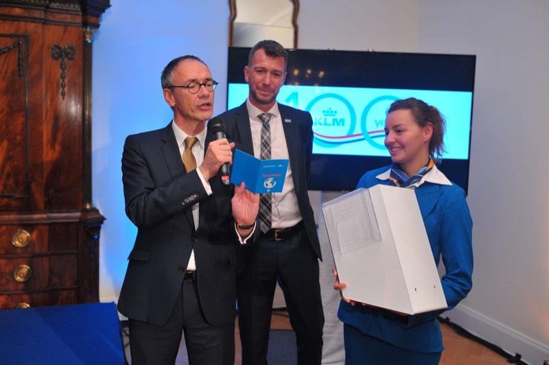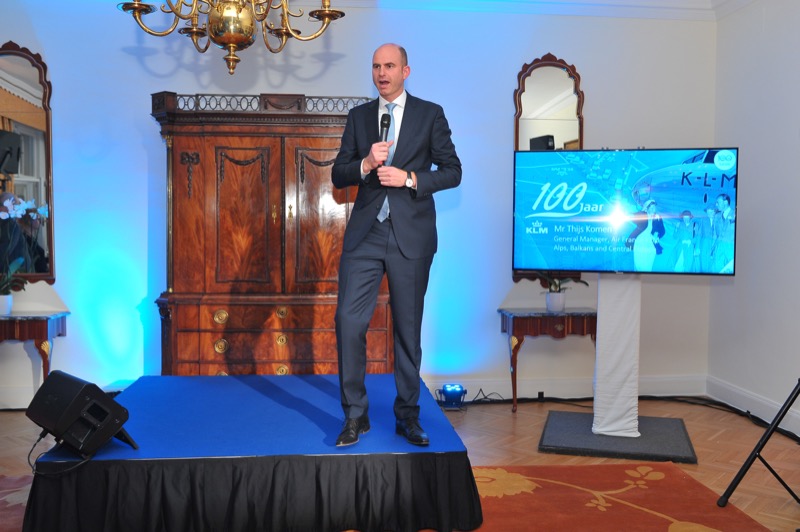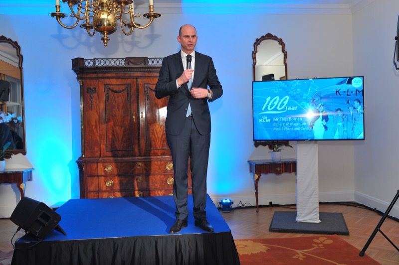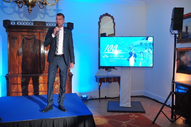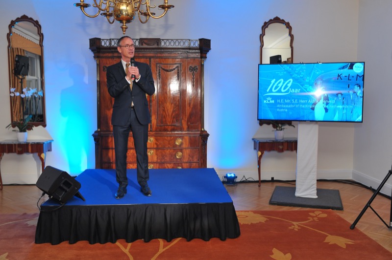 Gestern abend fand die KLM 100-Jahresfeier für Airline-Kunden und Geschäftspartner in den wunderschönen Räumlichkeiten der Residenz der niederländischen Botschaft in Wien statt. Die Eröffnung der Veranstaltung erfolgte durch den neuen niederländischen Botschafter in Österreich, S.E. Aldrik Gierveld.