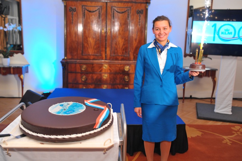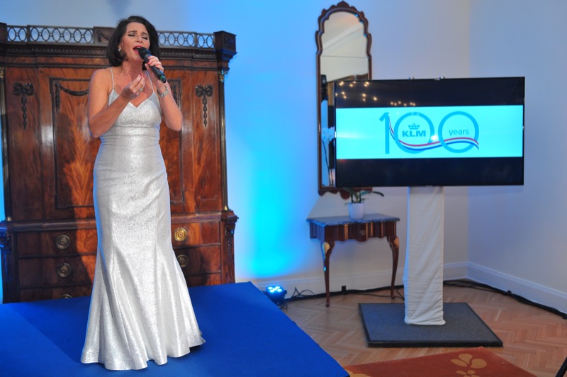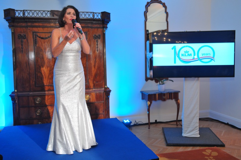 Als Dessert gab es für die Gäste natürlich passend zum Anlass eine überdimensional große KLM 100 Jahre – Geburtstagstorte. Und für einen Entertainment- Höhepunkt am Eventabend sorgte die Live-Performance der international renommierten, holländischen Musical-Sängerin Maya Hakvoort.